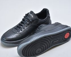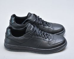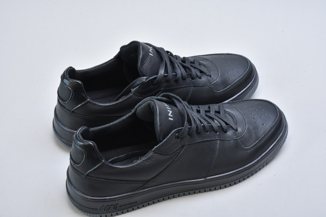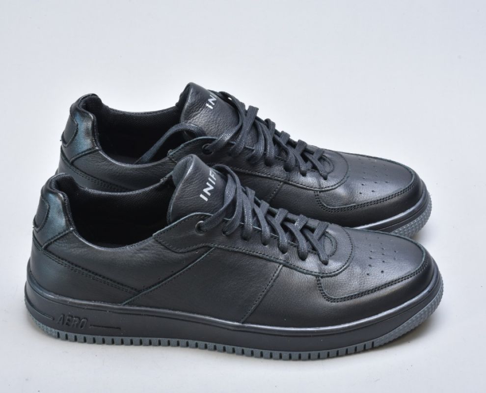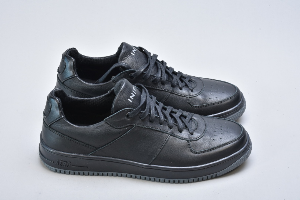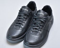 Ця модель чоловічих кросівок Inifil із натуральної шкіри виконана у класичному чорному кольорі — одному з найбільш універсальних та статусних відтінків чоловічого гардеробу. Лаконічний силует, акуратна перфорація на носку та продумані деталі створюють образ преміального чоловічого взуття у стилі modern casual.