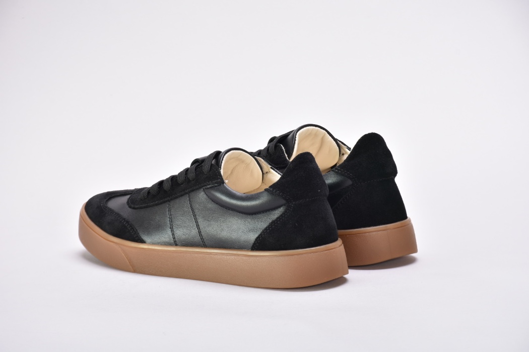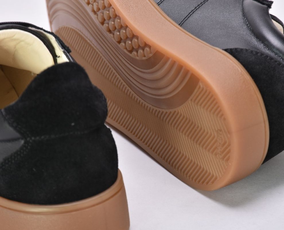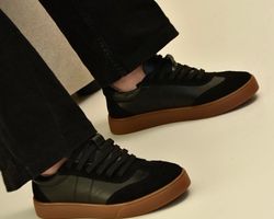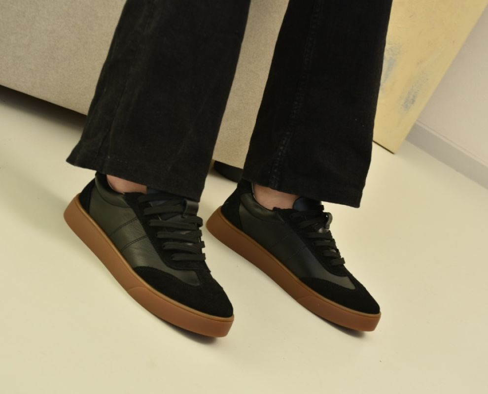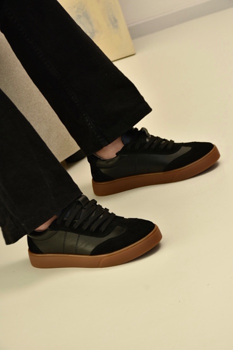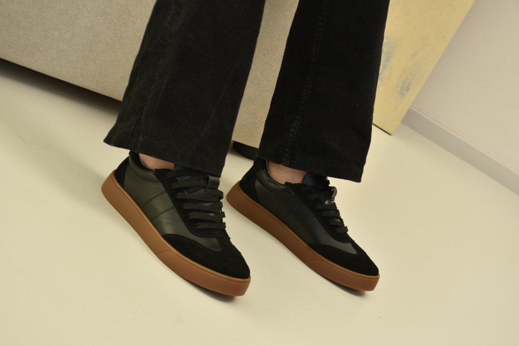 Саме ці кеди чорні з натуральної шкіри та замші стали окрасою колекції .Чорні кеди на платформі асоціюються насамперед із гранжем, їхня сила – в універсальності.Шкіряні чорні кеди додають характеру будь-якому образу: вони мають однаково гарний вигляд зі шкіряною курткою та прямими джинсами, мереживною сукнею.