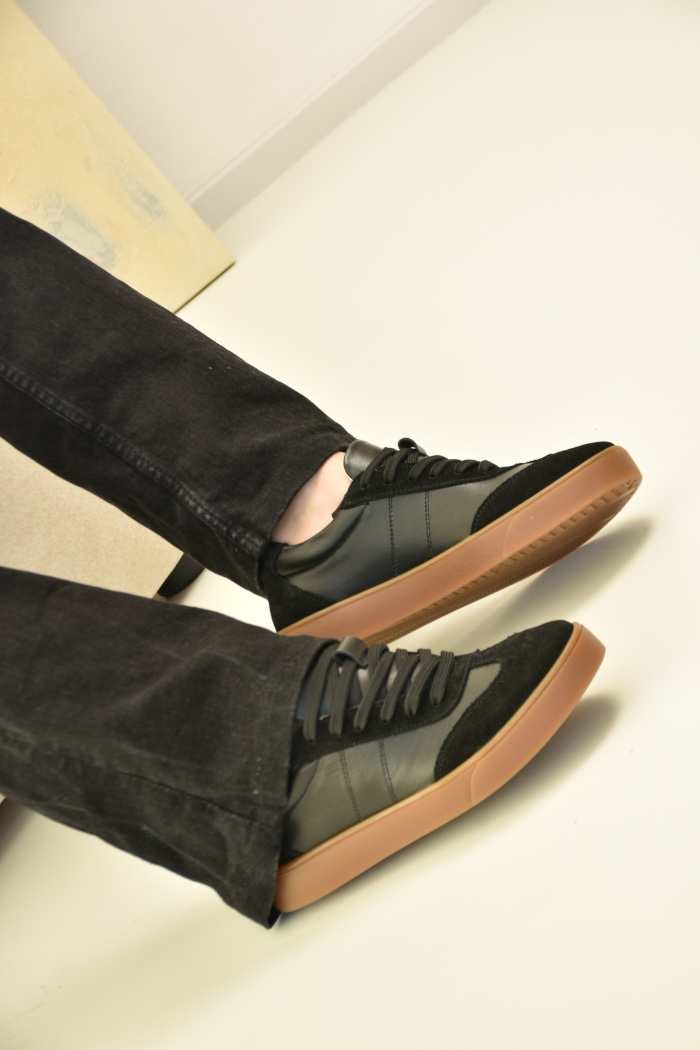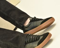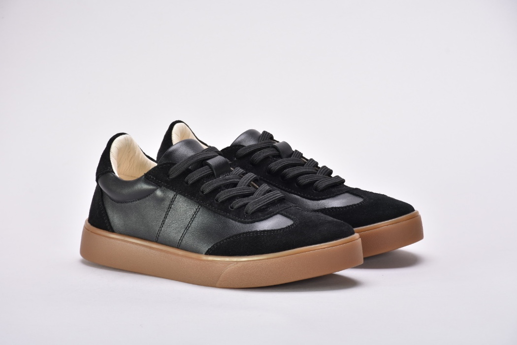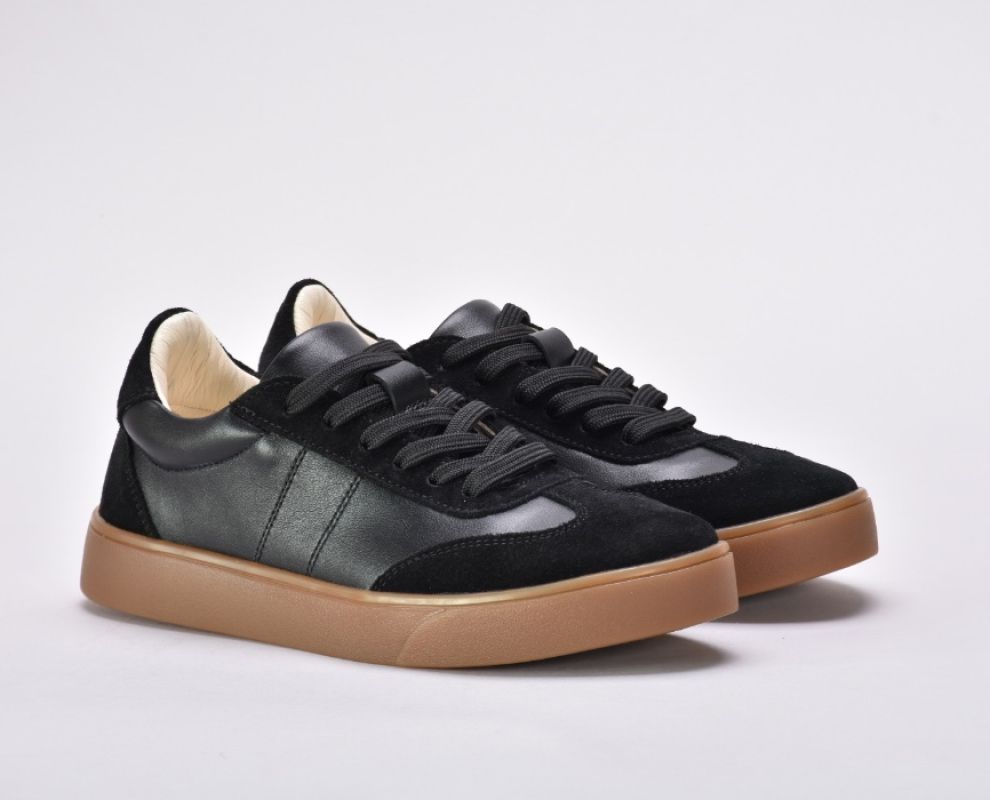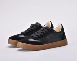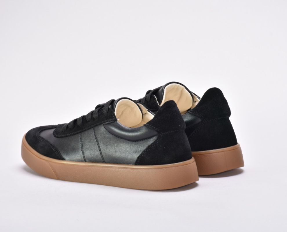 Саме ці кеди чорні з натуральної шкіри та замші стали окрасою колекції .Чорні кеди на платформі асоціюються насамперед із гранжем, їхня сила – в універсальності.Шкіряні чорні кеди додають характеру будь-якому образу: вони мають однаково гарний вигляд зі шкіряною курткою та прямими джинсами, мереживною сукнею.