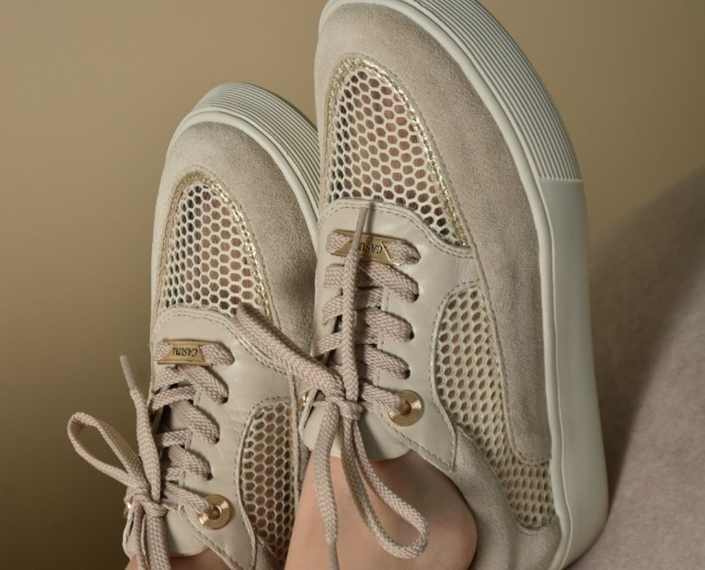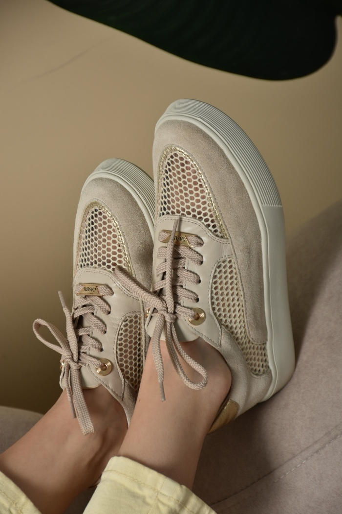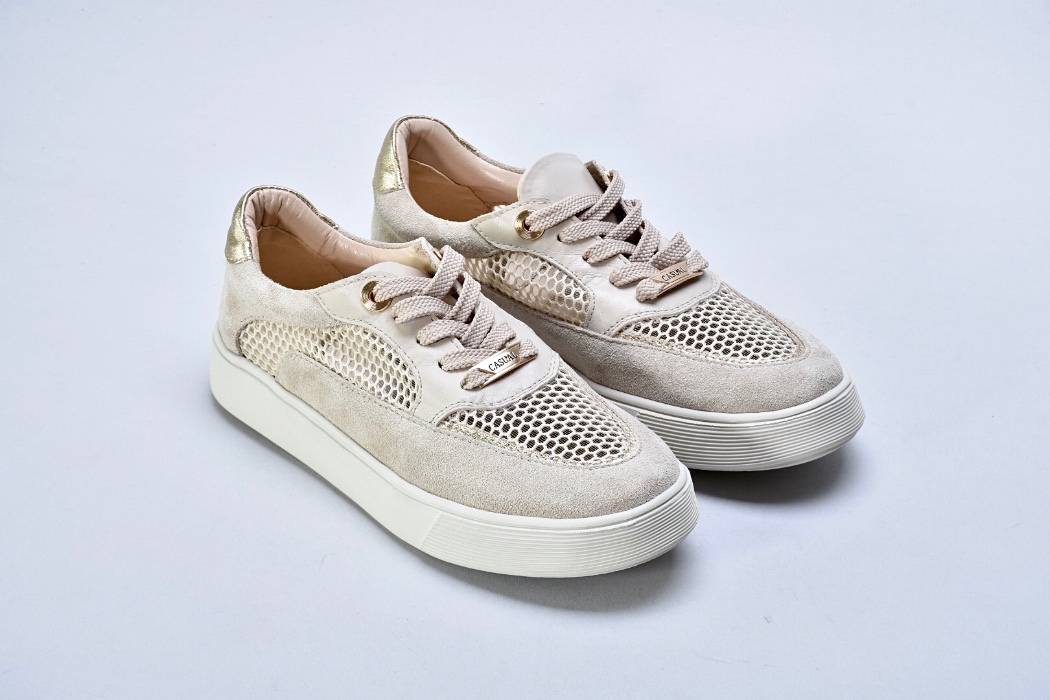Замша додає взуттю фактури й вишуканості . Доповнені бежевою шнурівкою. Ці кеди мають дуже легку підошву ЕВА,EVA - це високоякісний каучук.Підошва ЕВА має пористу структуру, наповнену мікроскопічними бульбашками повітря. І це сприяє не лише легкості.
