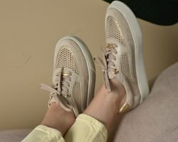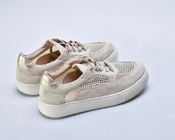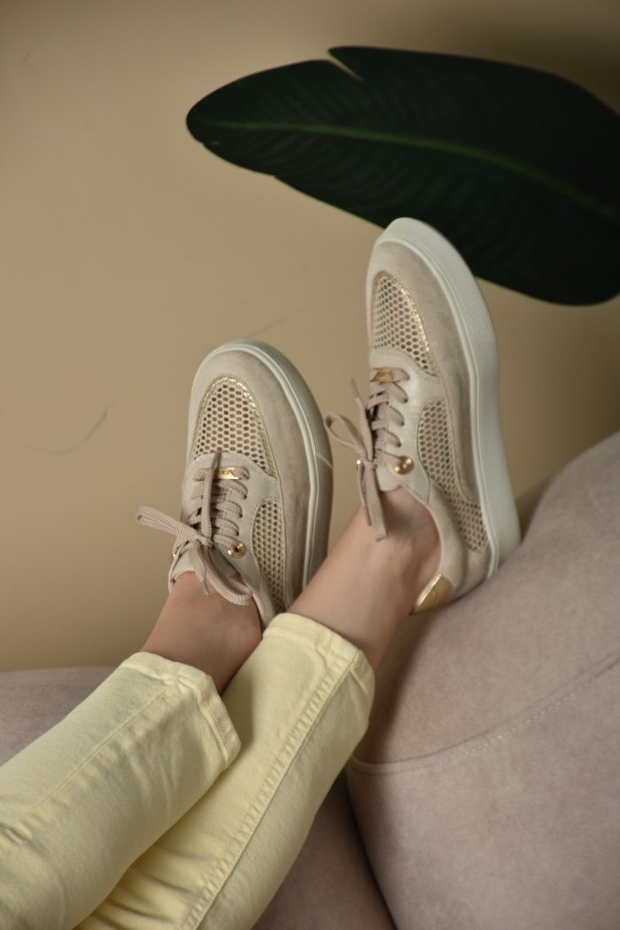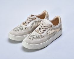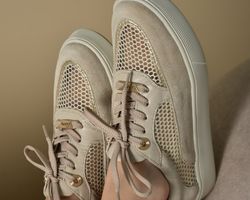 Зручні, стильні та універсальні, вони пасують і до повсякденного одягу, і до більш продуманих міських образів. Виконані з натуральної замші бежевого кольору .