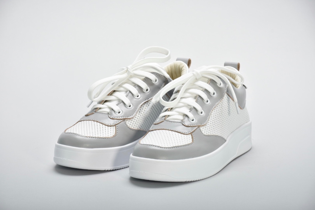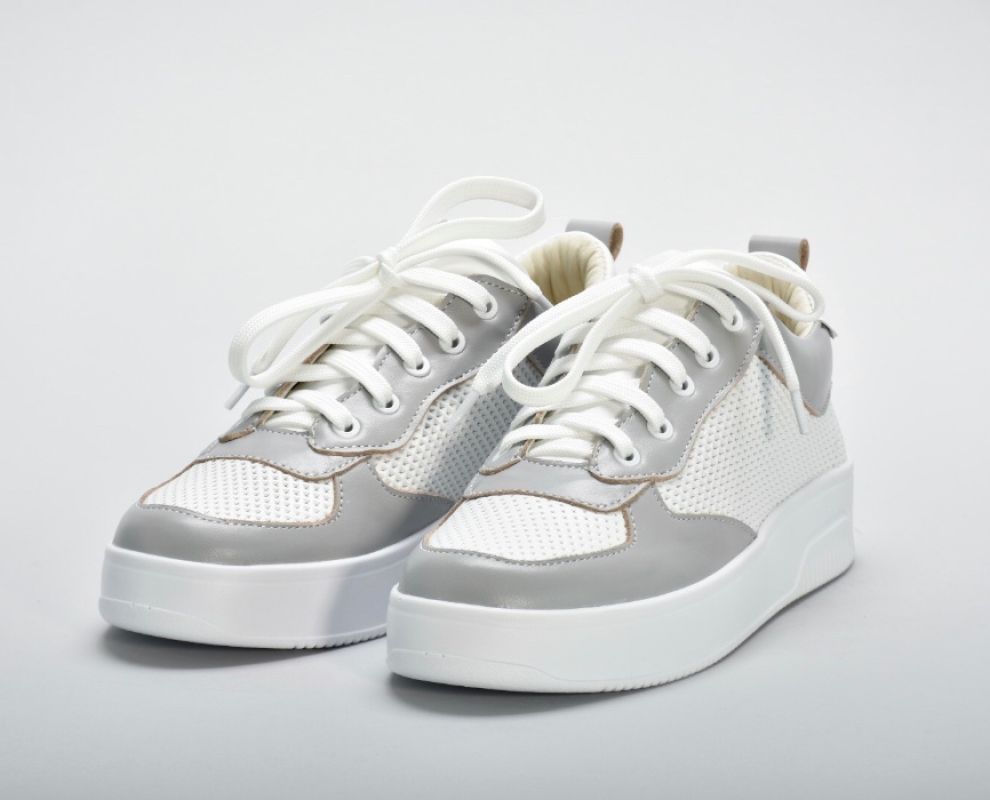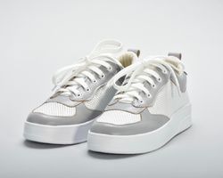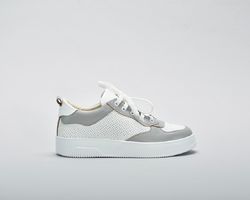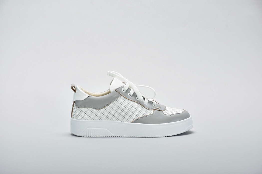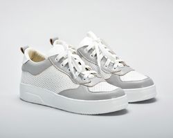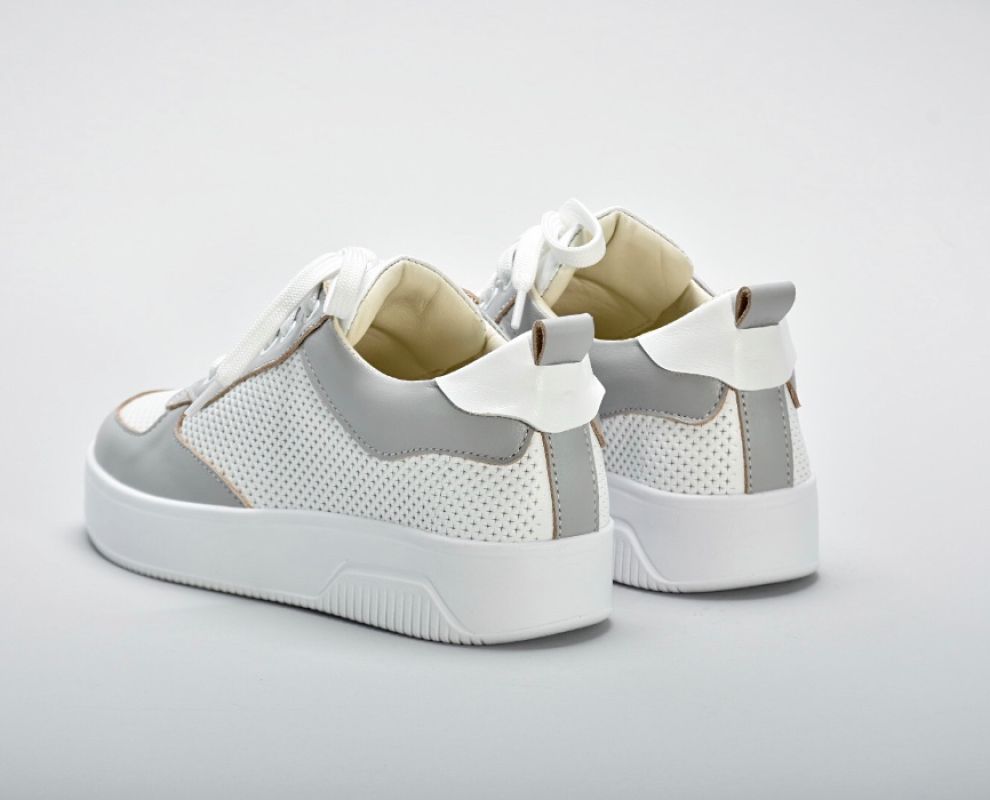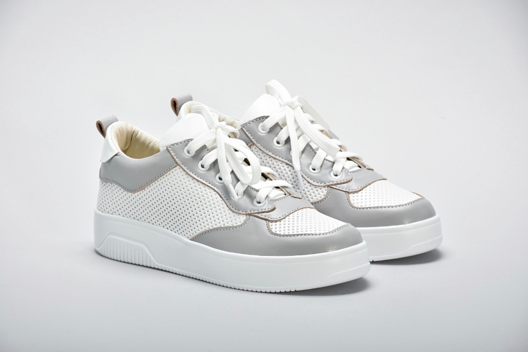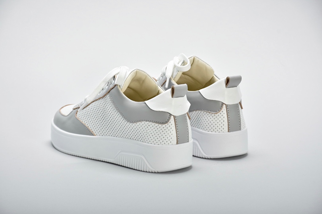 Комбінація білої та сірої натуральної шкіри створюють яскравий контраст.