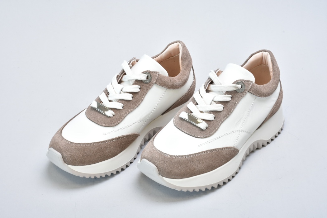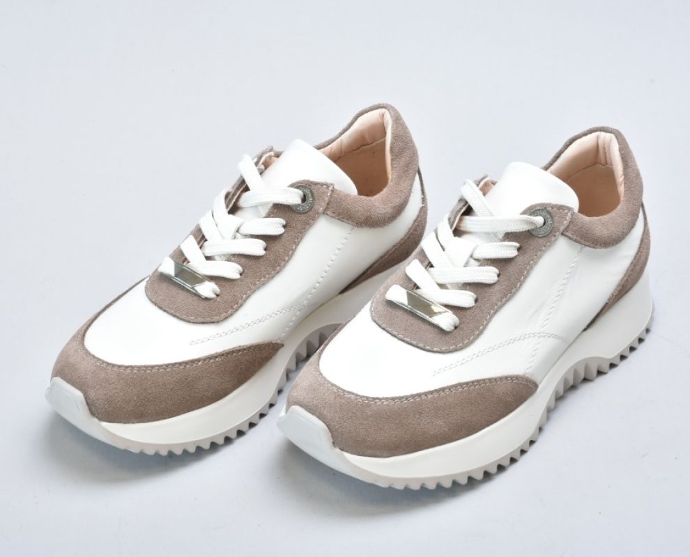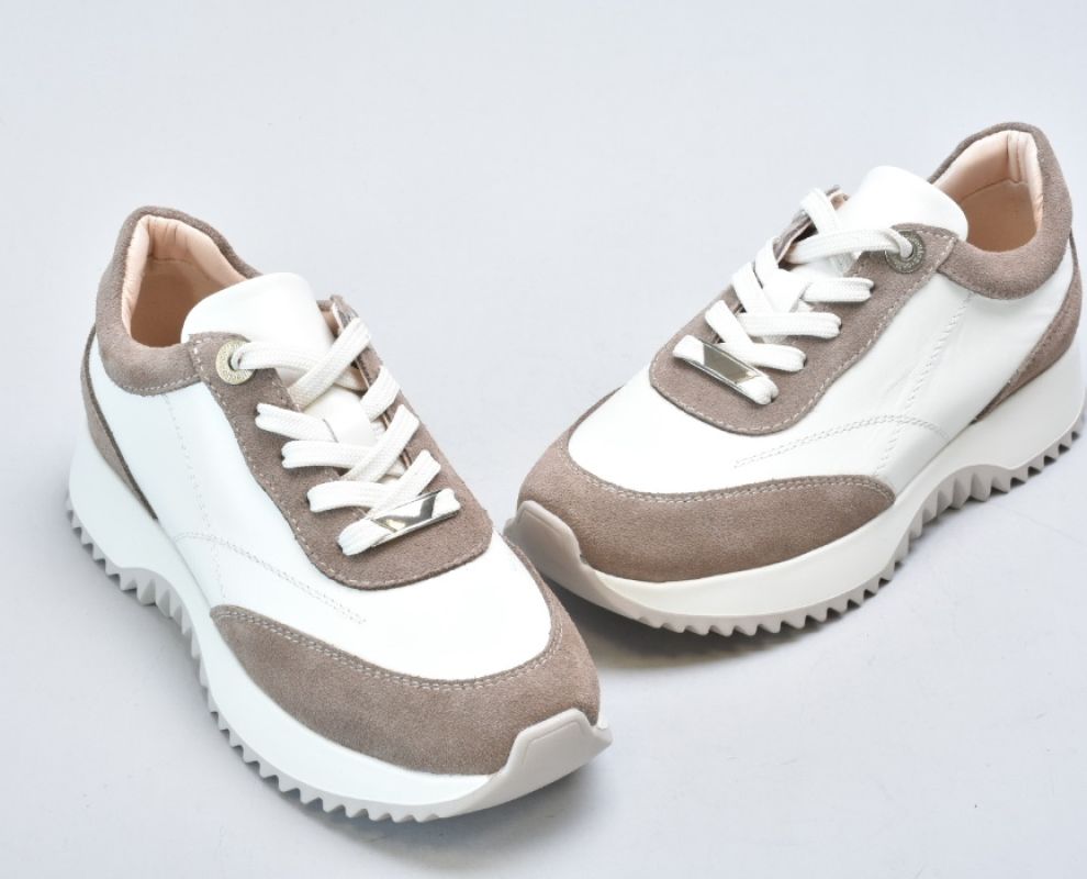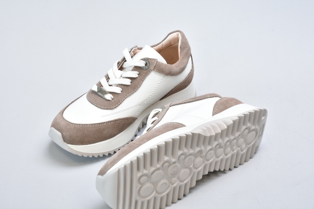 Верх виготовлений із натуральної гладкої шкіри преміальної якості у відтінку айворі, яка відзначається м’якістю, довговічністю та красивою природною фактурою. Замшеві вставки теплого бежевого кольору додають глибини дизайну та роблять модель більш фактурною й виразною.