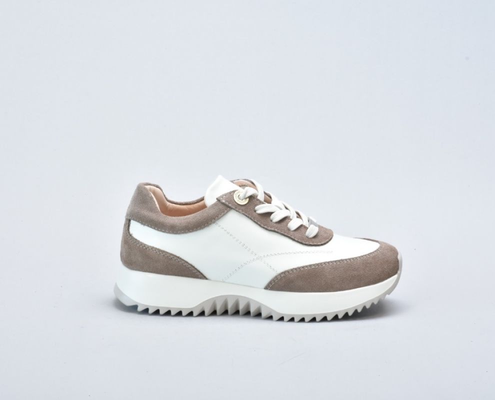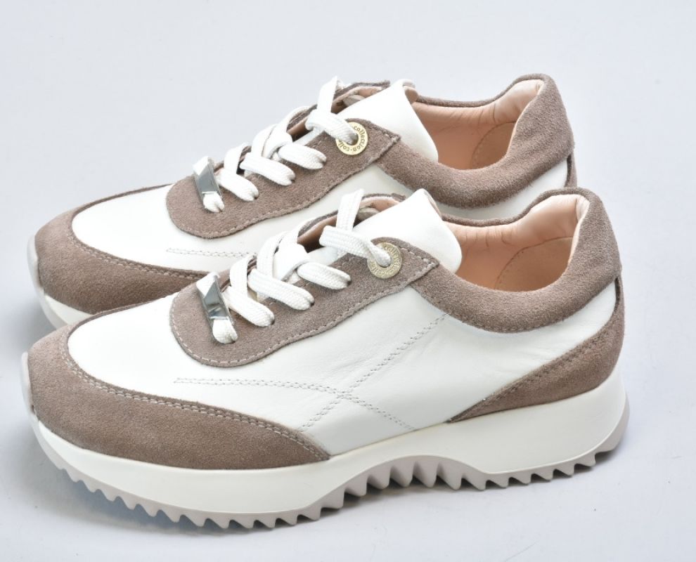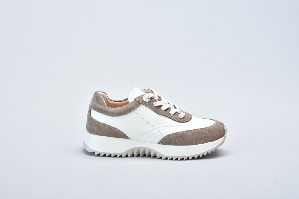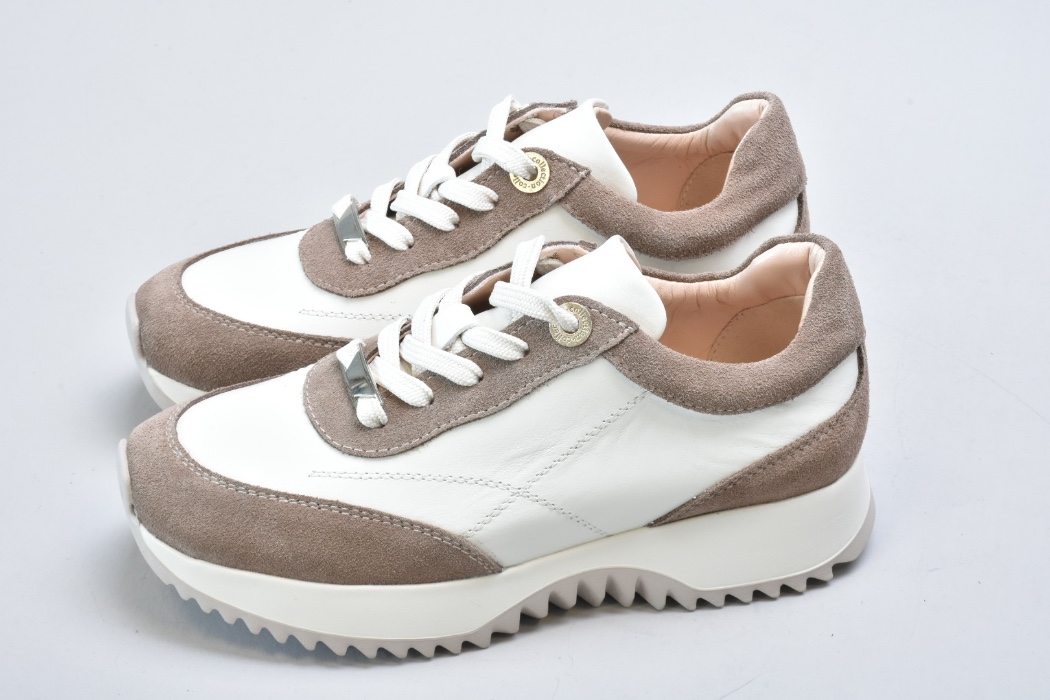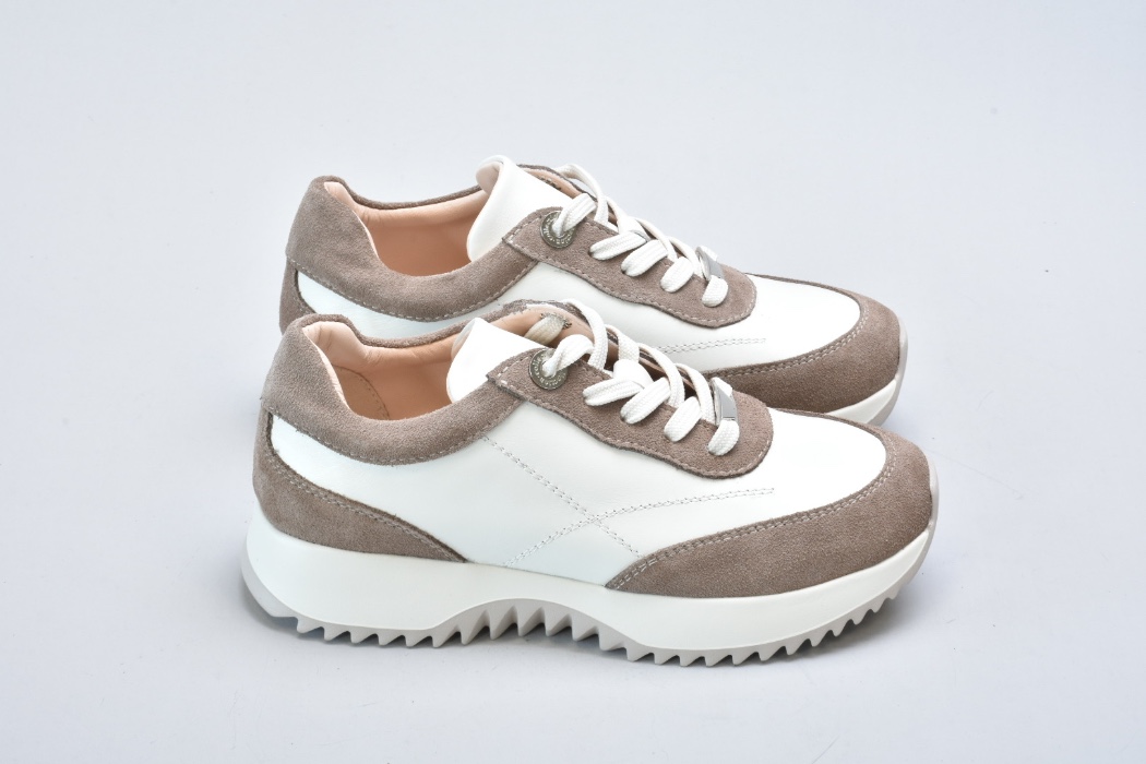 Верх виготовлений із натуральної гладкої шкіри преміальної якості у відтінку айворі, яка відзначається м’якістю, довговічністю та красивою природною фактурою. Замшеві вставки теплого бежевого кольору додають глибини дизайну та роблять модель більш фактурною й виразною.