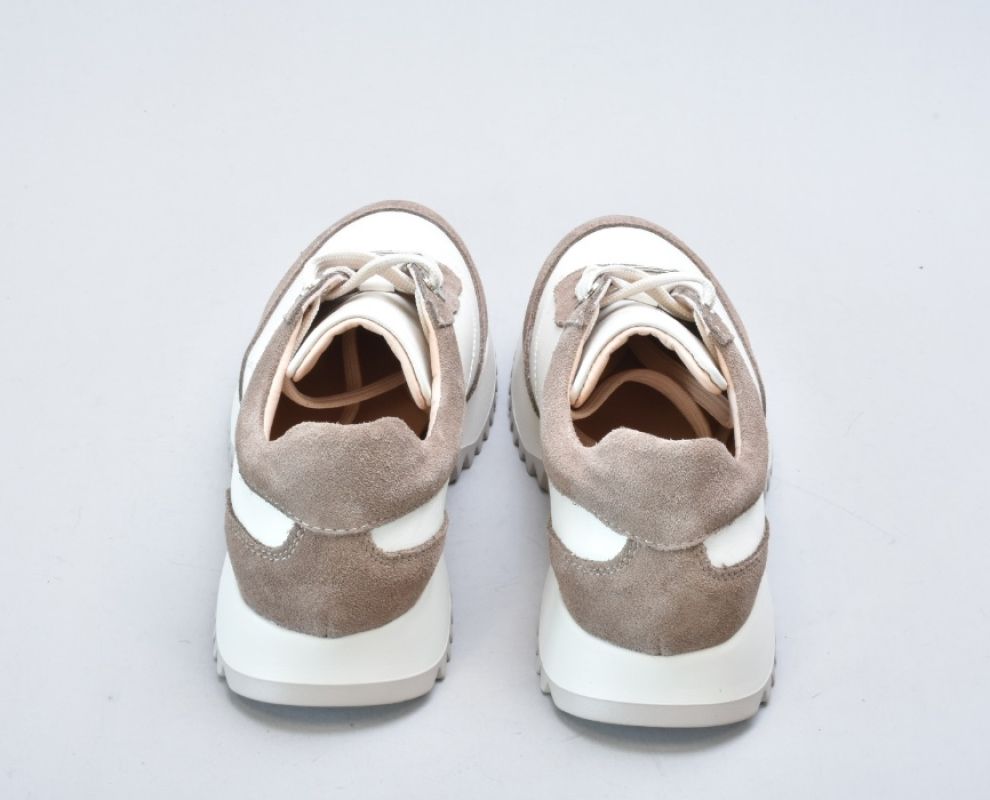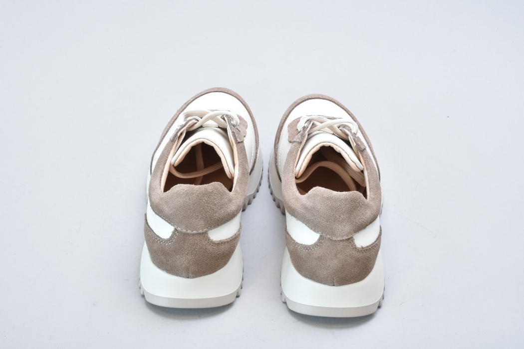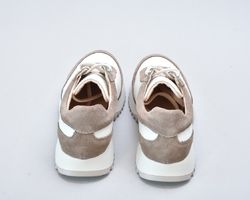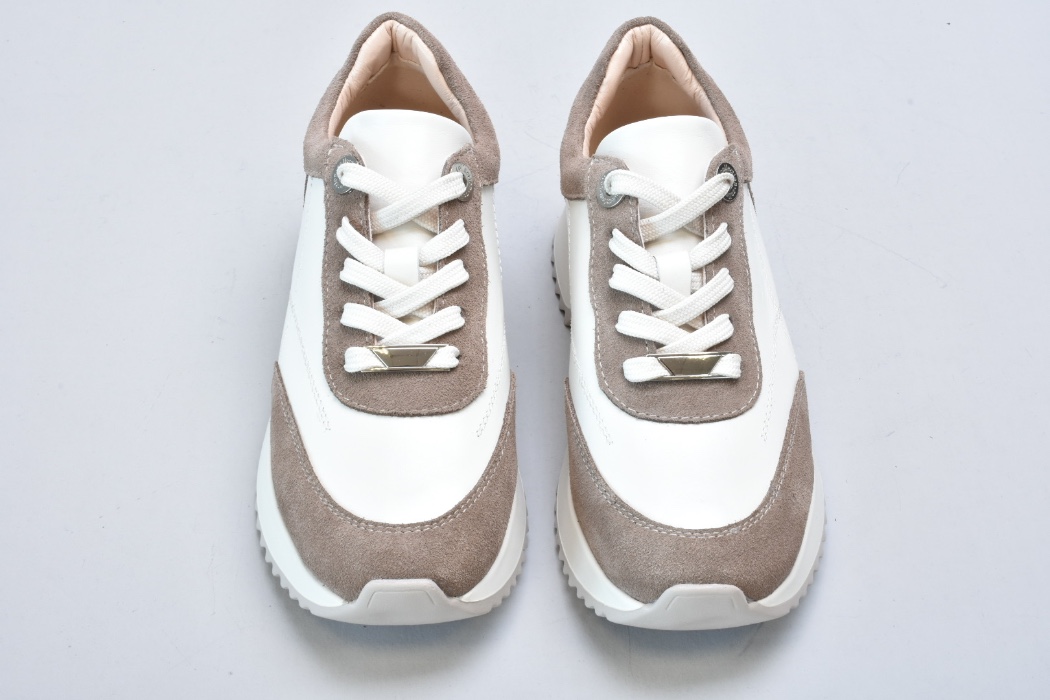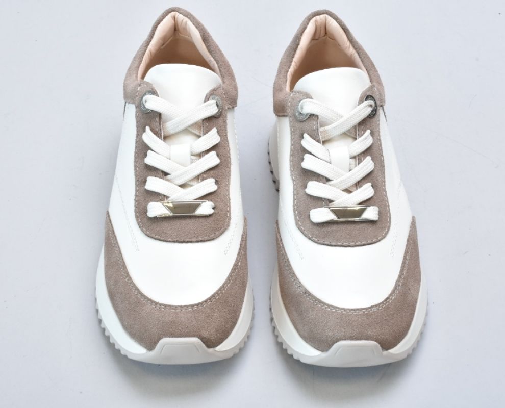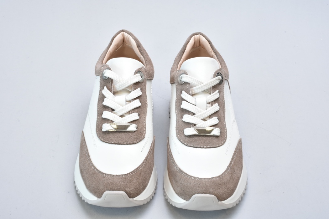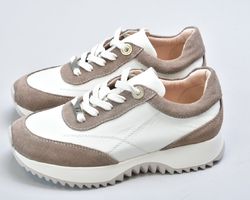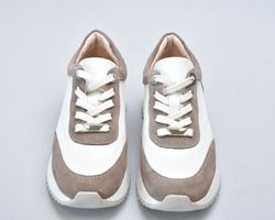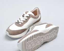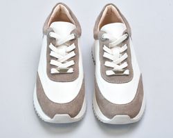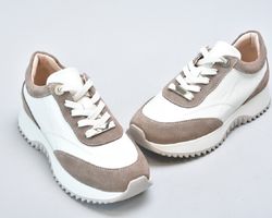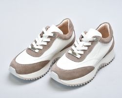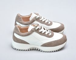 Кросівки inifil виконані у витонченому поєднанні натуральної шкіри кольору айворі та м’якої бежевої замші, що створює благородний контраст текстур і підкреслює сучасну естетику моделі. Чисті лінії, стримана кольорова палітра та продуманий баланс матеріалів надають цій парі характеру європейської елегантності у стилі сучасної італійської casual-класики.