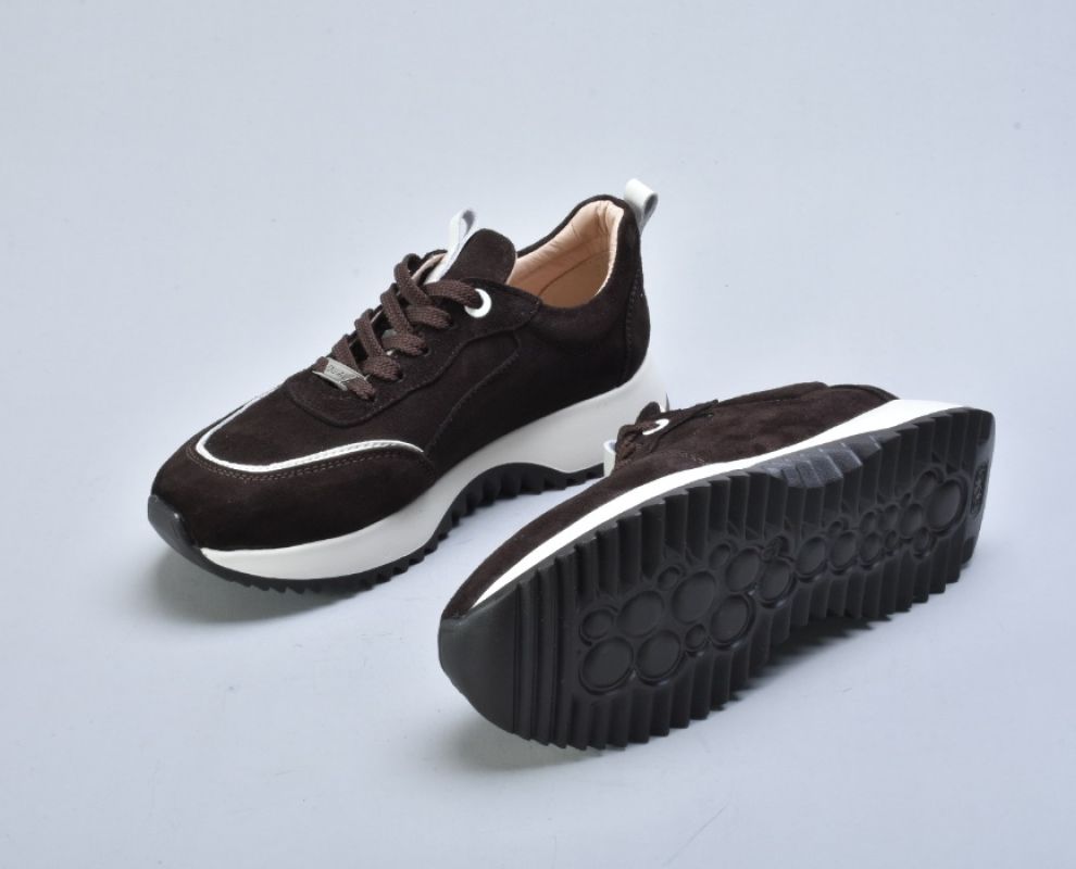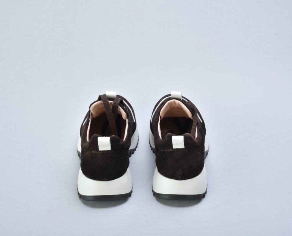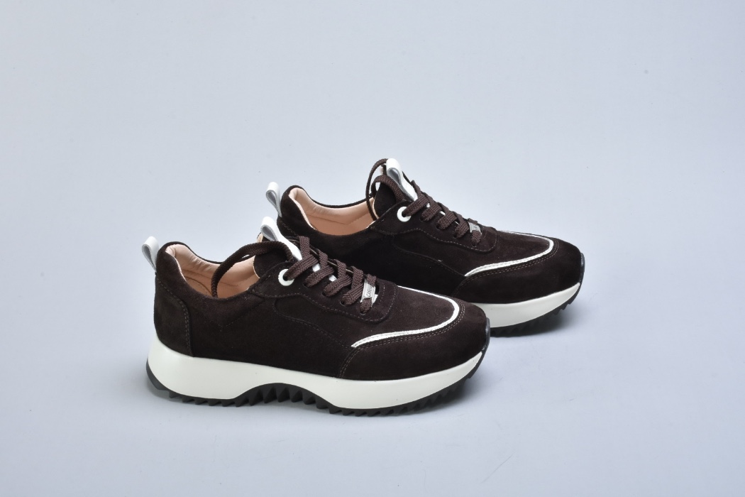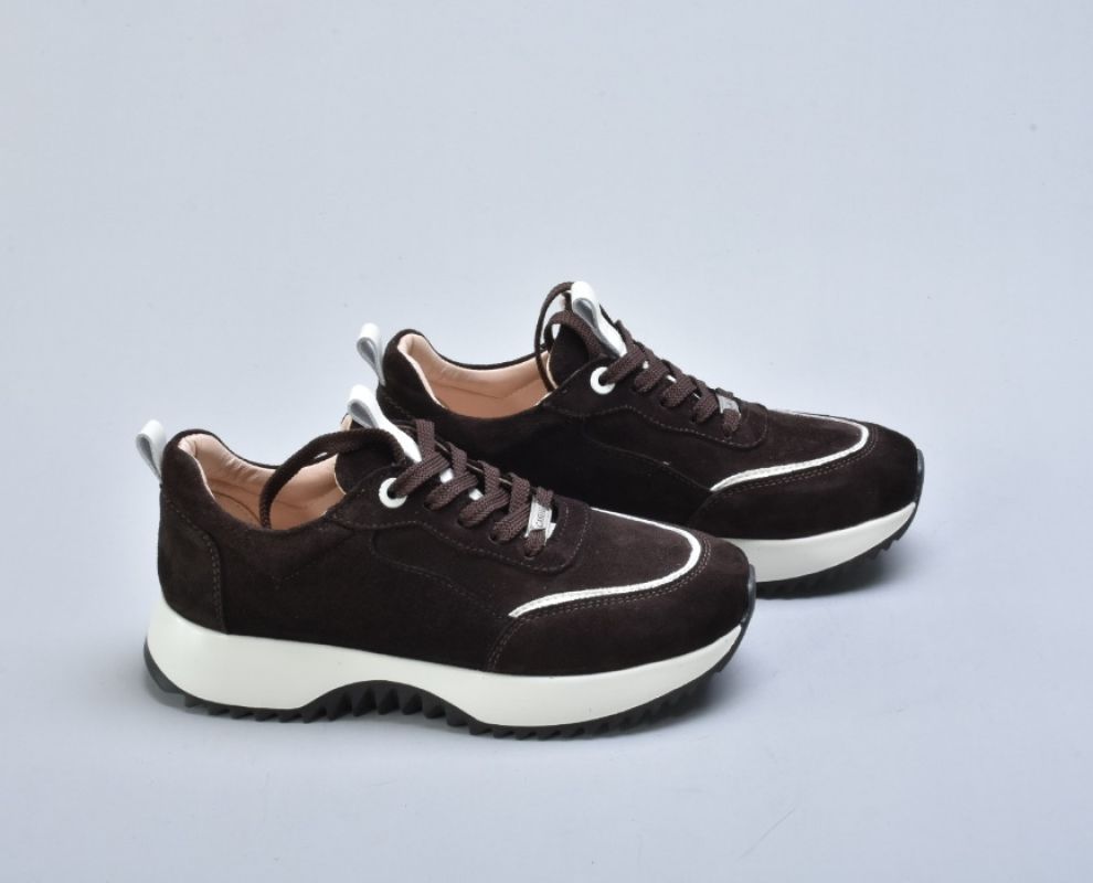 Легка підошва з EVA (Ева) — це сучасне технологічне рішення для максимального комфорту. Вона має мінімальну вагу, хорошу амортизацію та гнучкість. EVA ефективно поглинає навантаження під час ходьби, зменшуючи втому. Рельєфний протектор додає стійкості та практичності. Світлий відтінок підошви створює трендовий контраст із глибокою коричневою замшею.