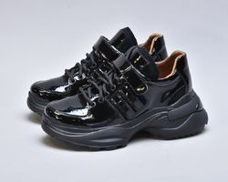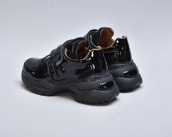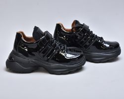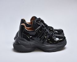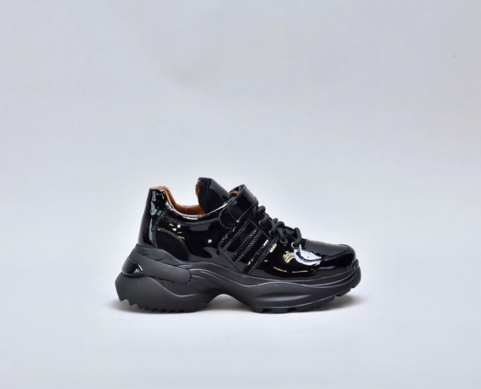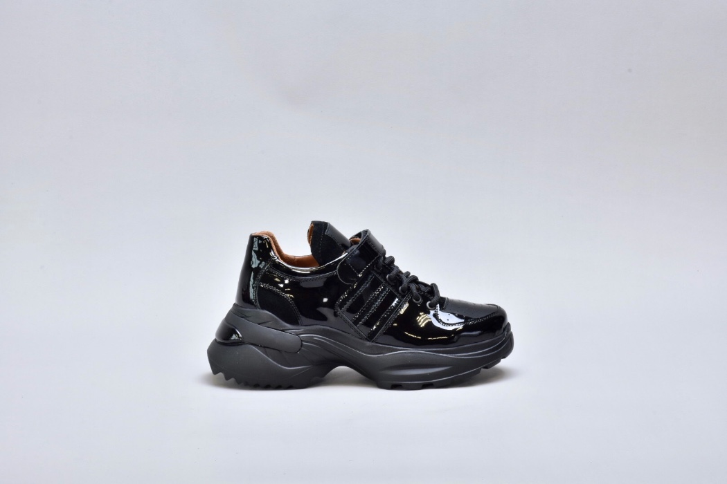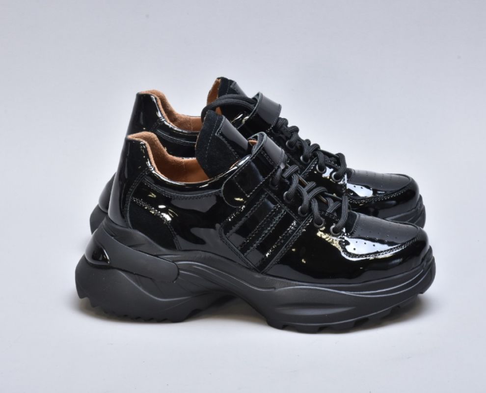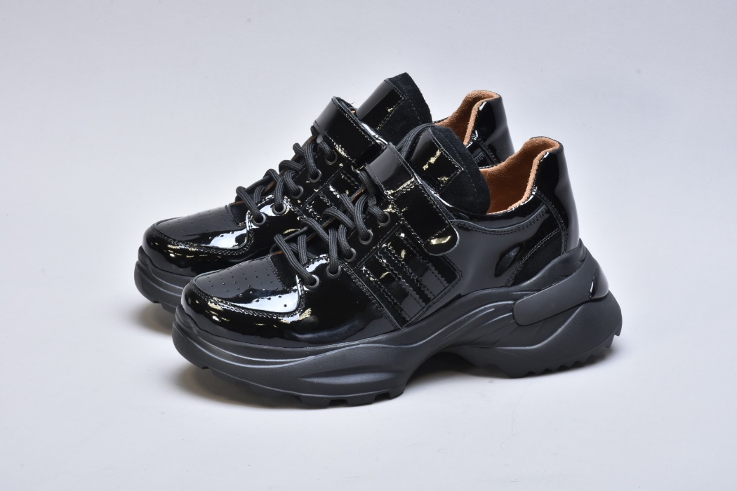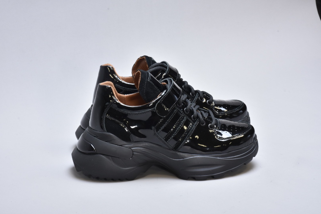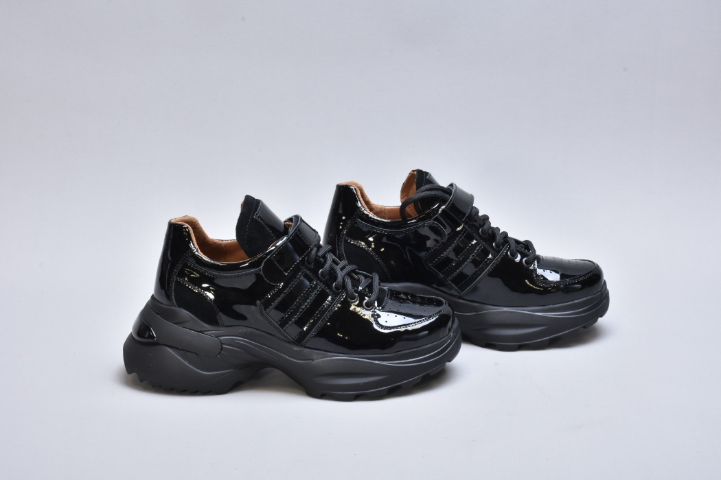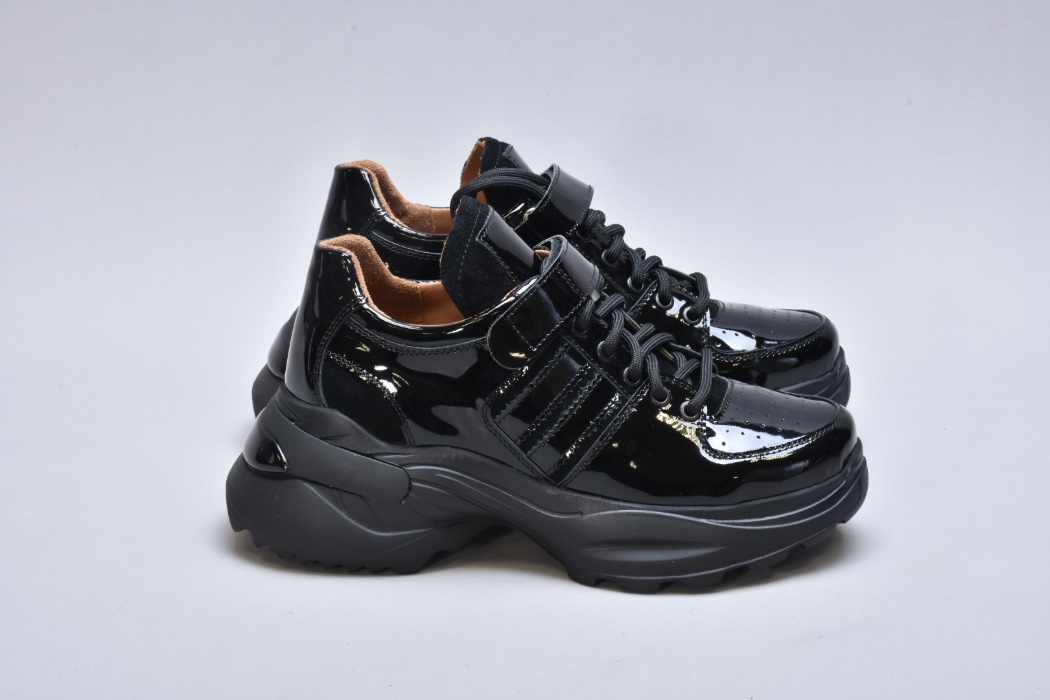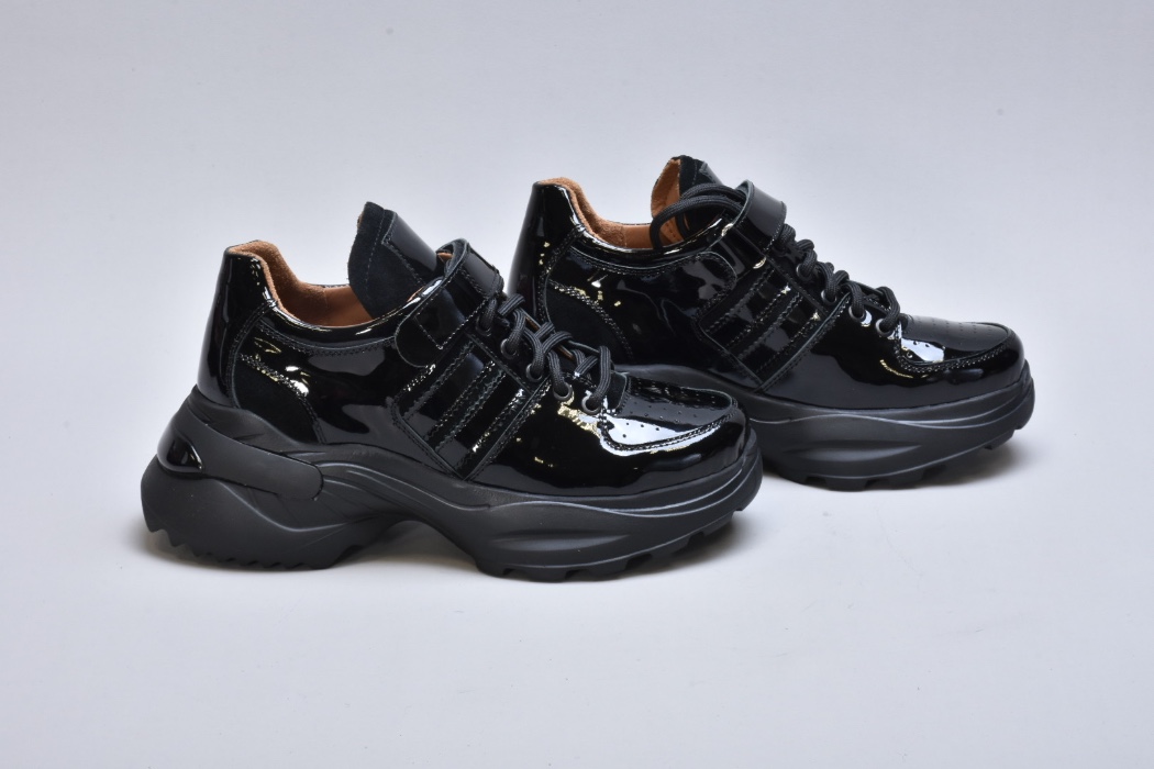 Модель виконана з натуральної лакованої шкіри, що надає взуттю ефектного глянцевого блиску та витонченого вигляду. Збоку розташовані вставки із м’якої натуральної замші, які додають моделі глибини фактур і підкреслюють її преміум-характер.