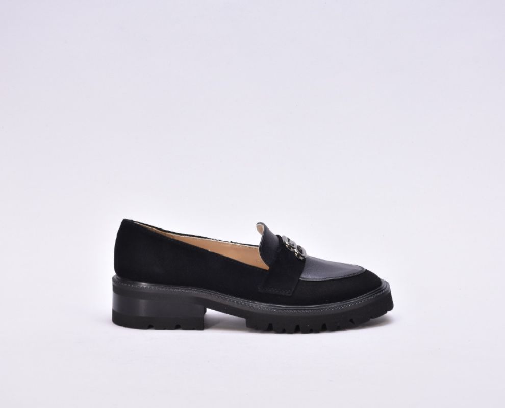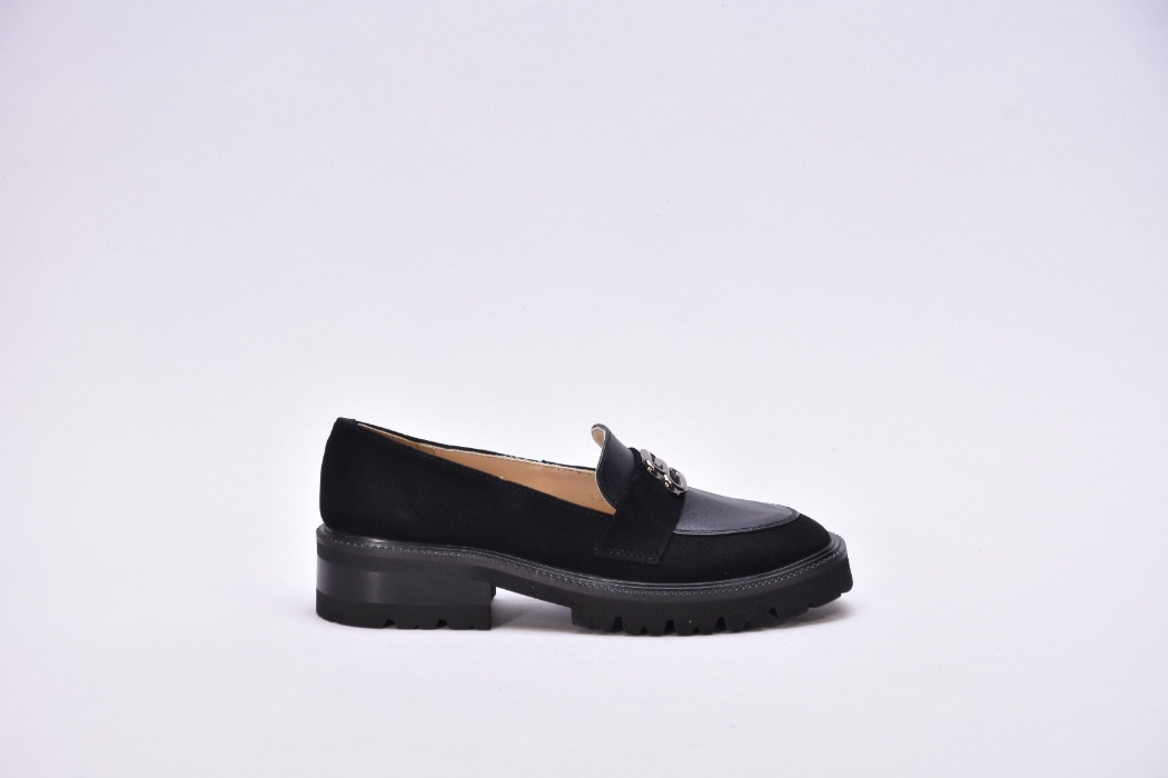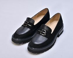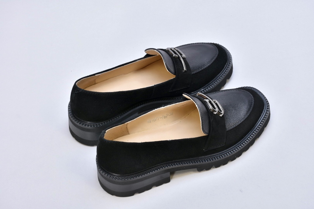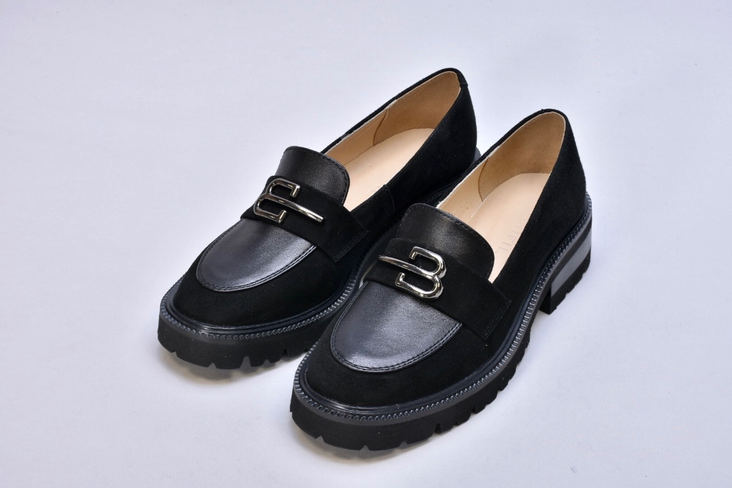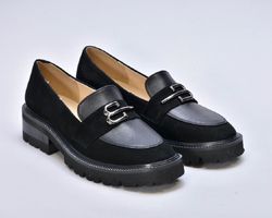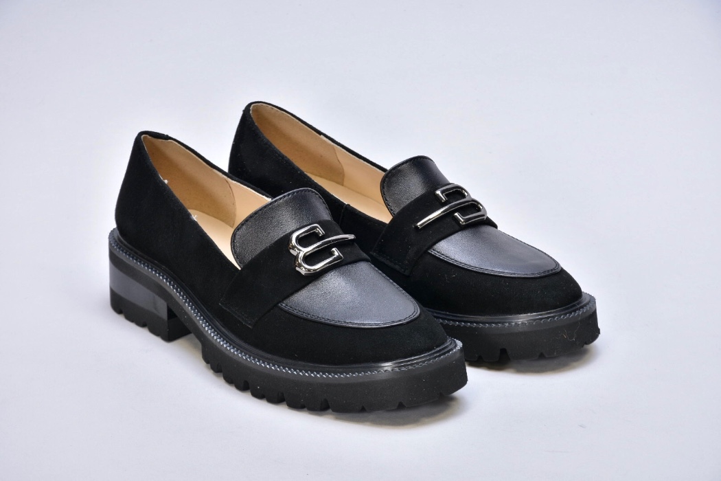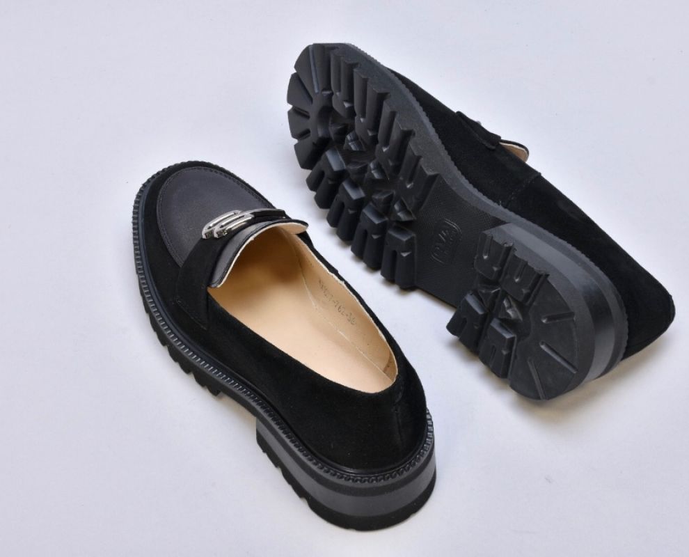 Чорні шкіряні лофери гучно заявляють про свою універсальність. Оздоблені натуральною замшею, вони стали кращим вибором для модниць.