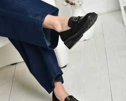 Підклад та устілка лоферів з натуральної шкіри вищого сорту . Чорні лофери можуть адаптуватися не тільки до будь-якого сезону, але й до будь-якої модної естетики.