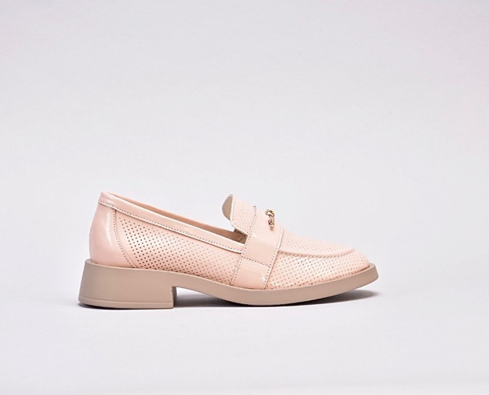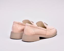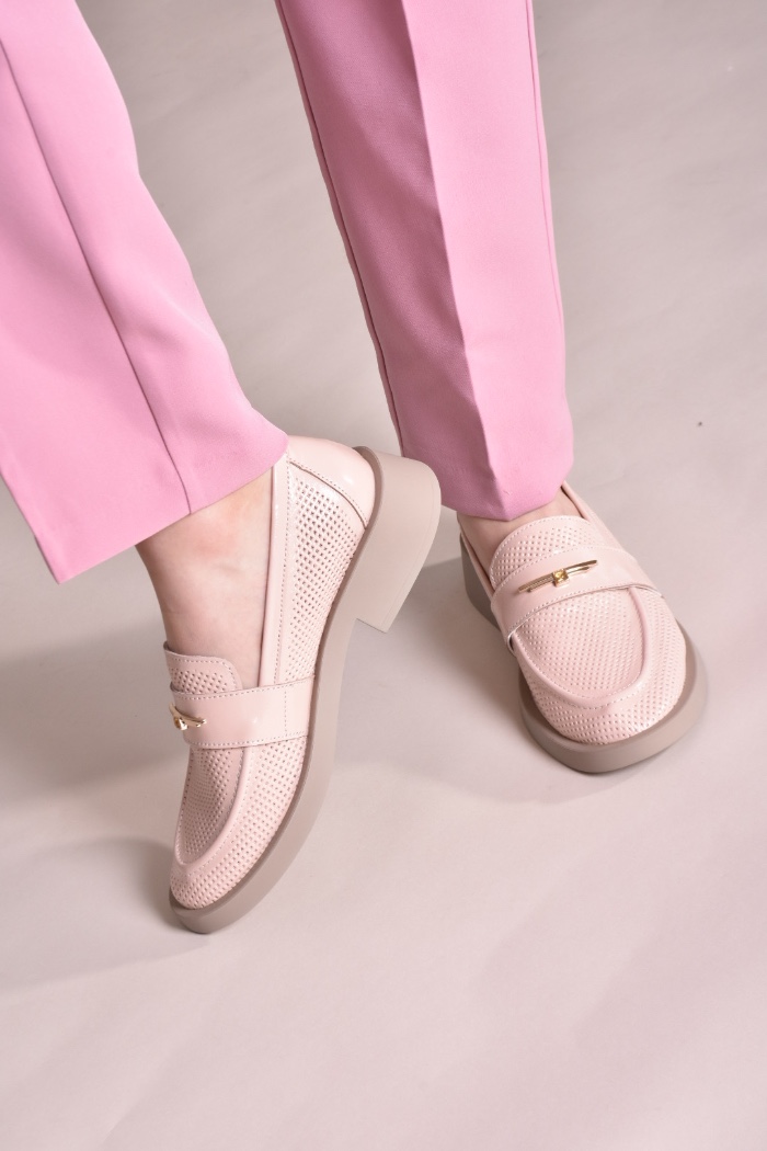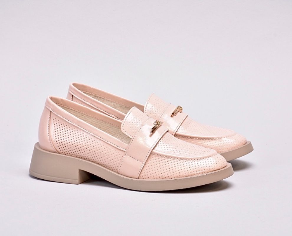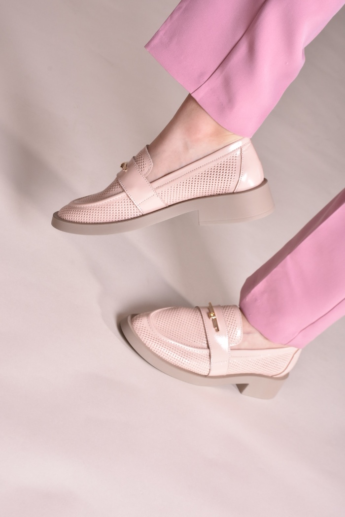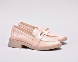 Лофери лаковані пудрово-рожевого відтінку з золотистою фурнітурою