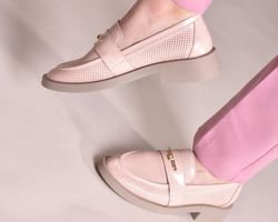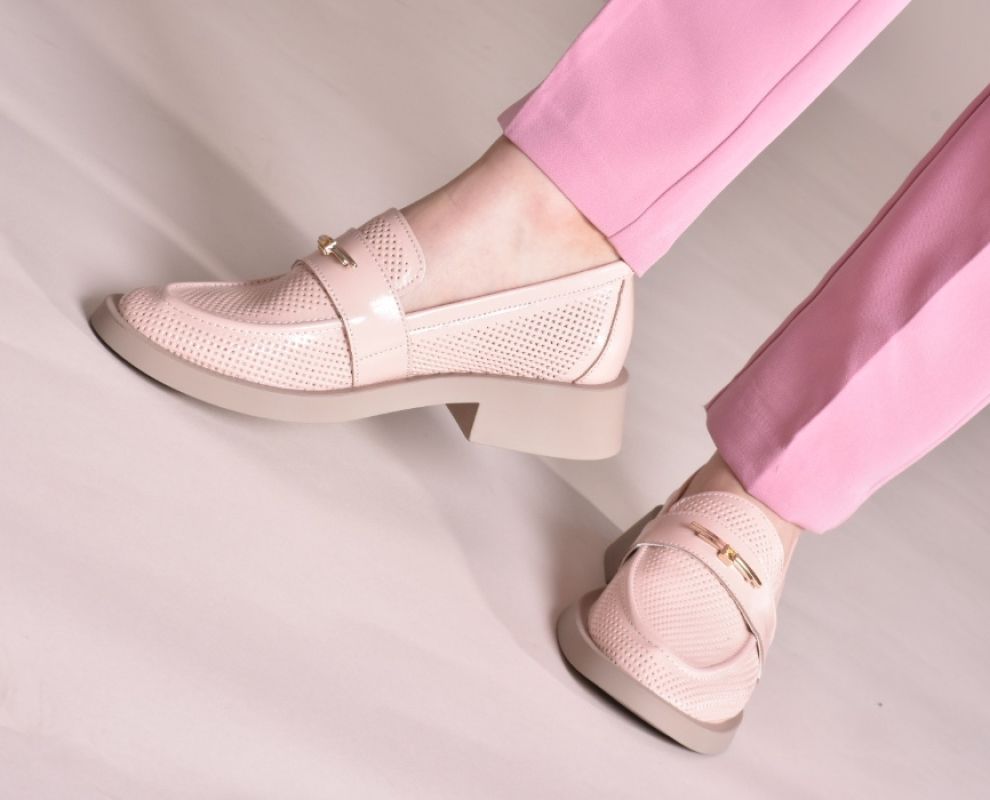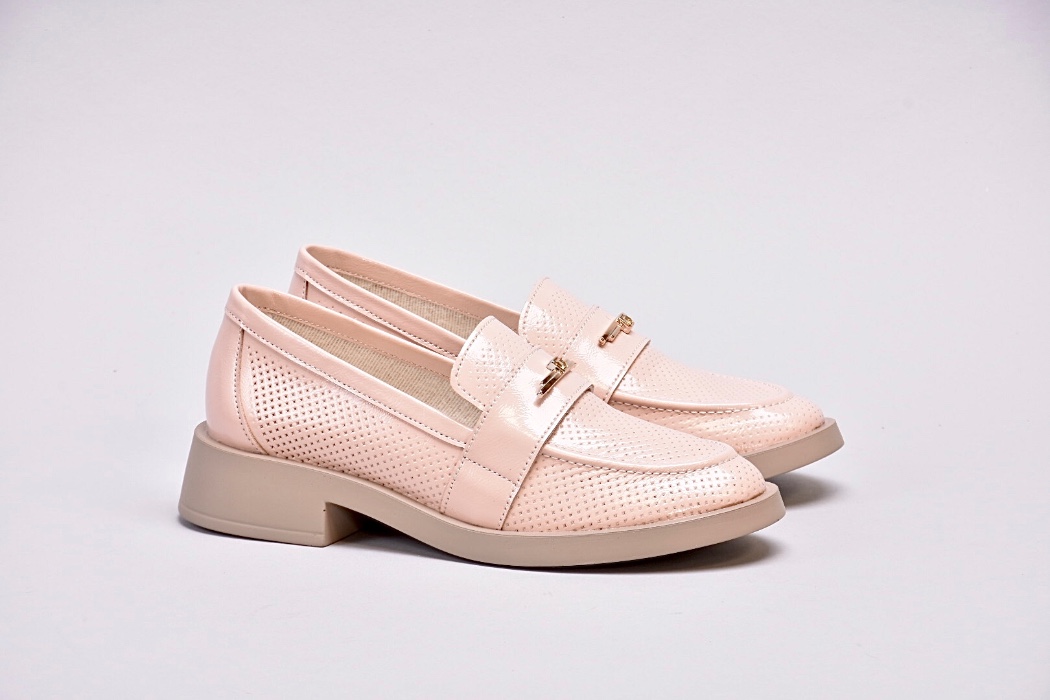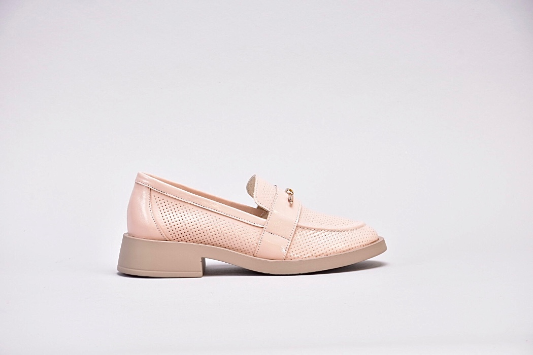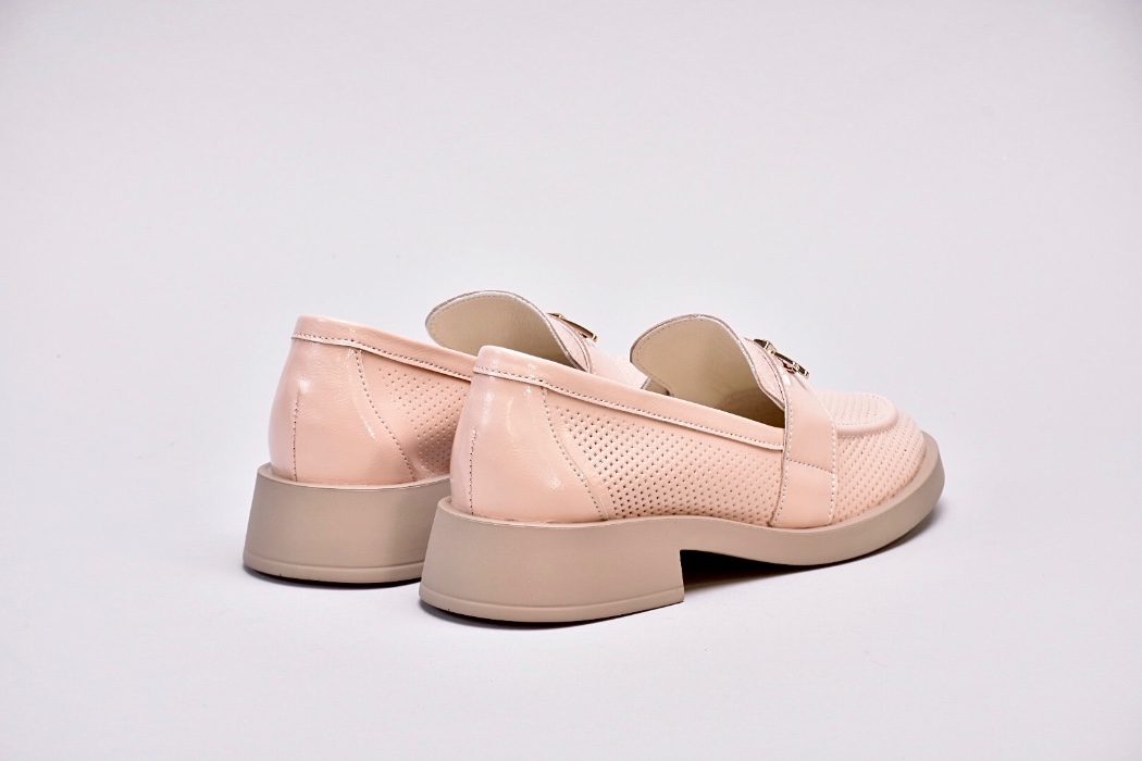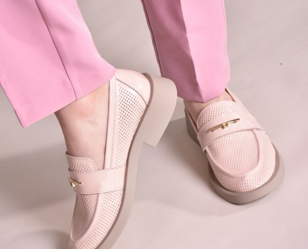 Лофери лаковані пудрово-рожевого відтінку з золотистою фурнітурою
