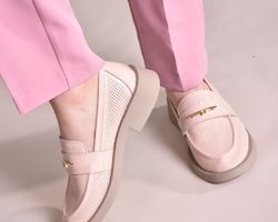 Крім того, що лофери — неймовірно зручне взуття, дизайнери вирішили внести в свій дизайн елементи декору, щоб зробити лофери більш жіночними та оригінальними,декорували їх яскравою фурнітурою кольору золото.