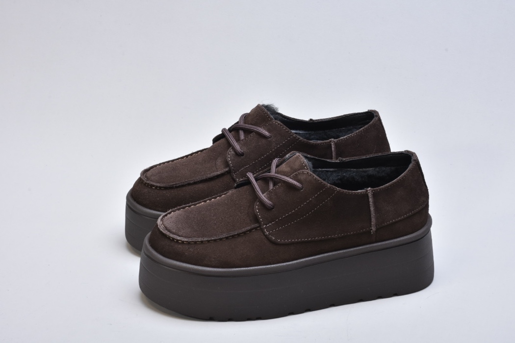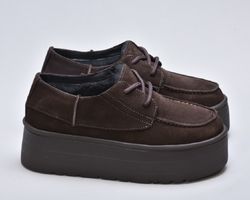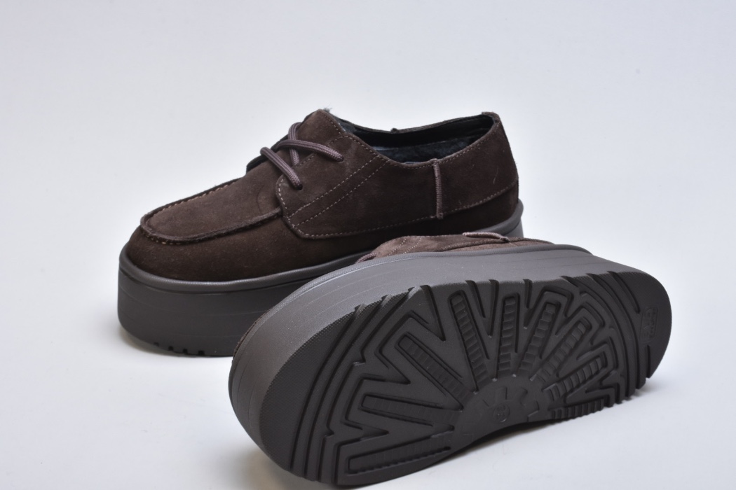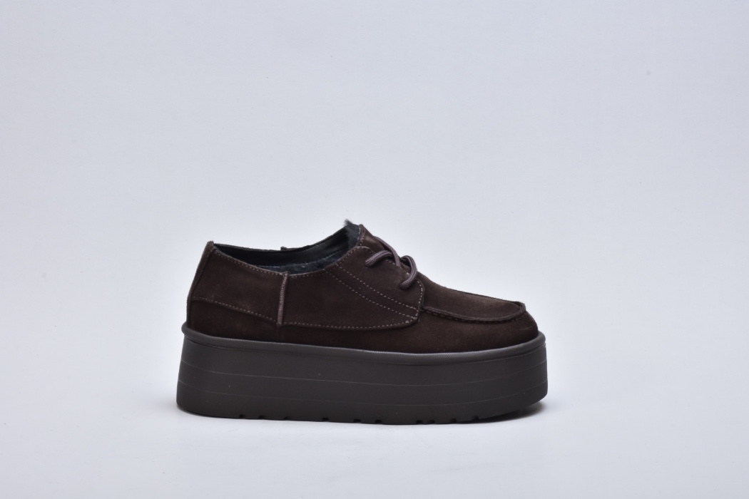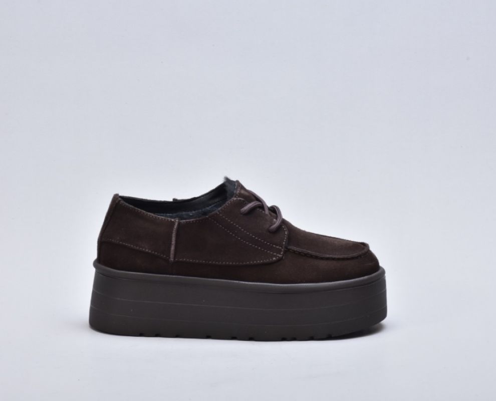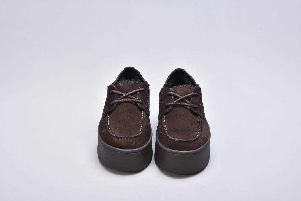 Її глибокий шоколадний відтінок надає взуттю розкішного вигляду, а мінімалістичний крій підкреслює сучасний стиль бренду. Замша оброблена для підвищеної стійкості до вологи та збереження первісної фактури навіть за активного використання.