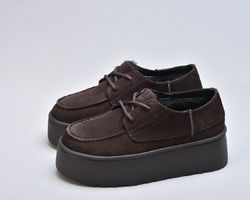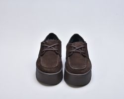 Ці стильні зимові дербі шоколадної натуральної замші від Inifil — втілення трендів сезону 2025–2026, де поєднуються комфорт, сучасна естетика та бездоганна якість.