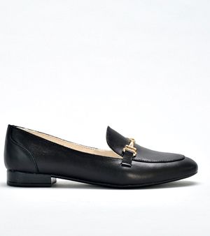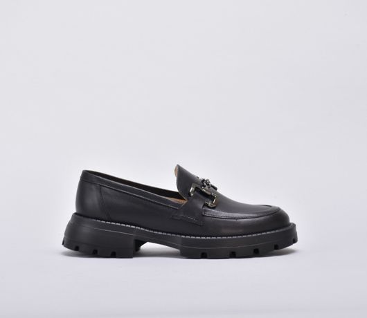 Шкіряні лофери чорного кольору декоровані ланцюжком