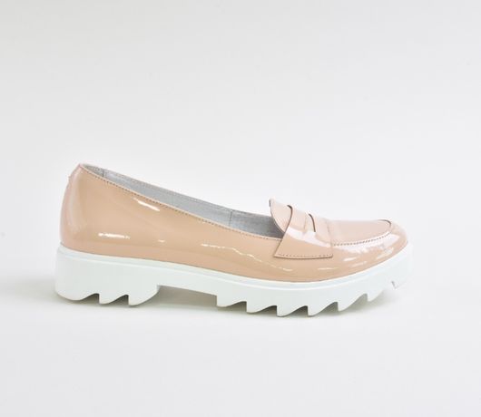 Бежеві лаковані лофери