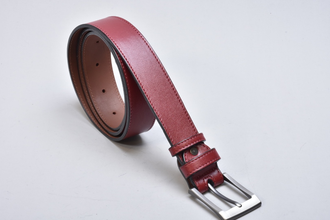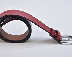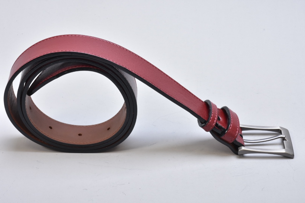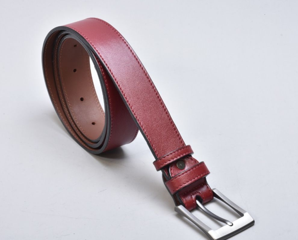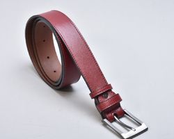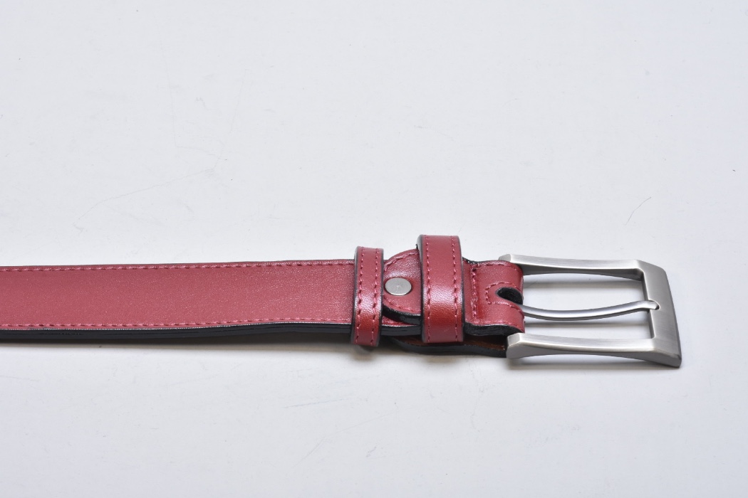 Традиційний класичний шкіряний ремінь INIFIL бордового кольору , який гармонує з будь-яким кольором взуття і одягу, доповнений пряжкою колір нікель.