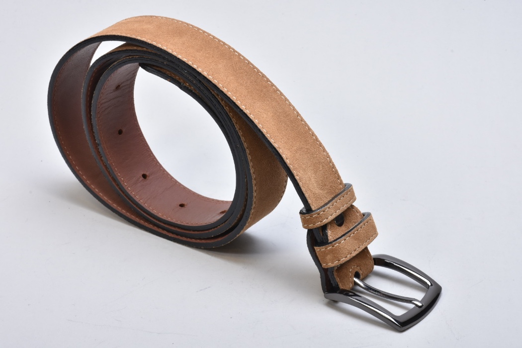 Чоловічий шкіряний ремінь з темною пряжкою нікель , довжина ременя 132 см