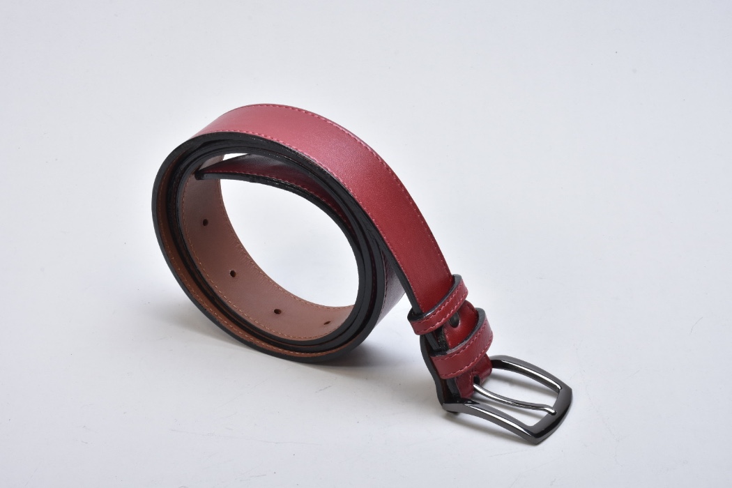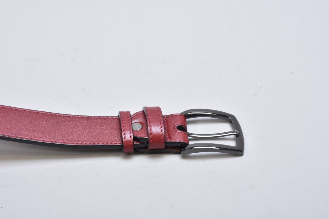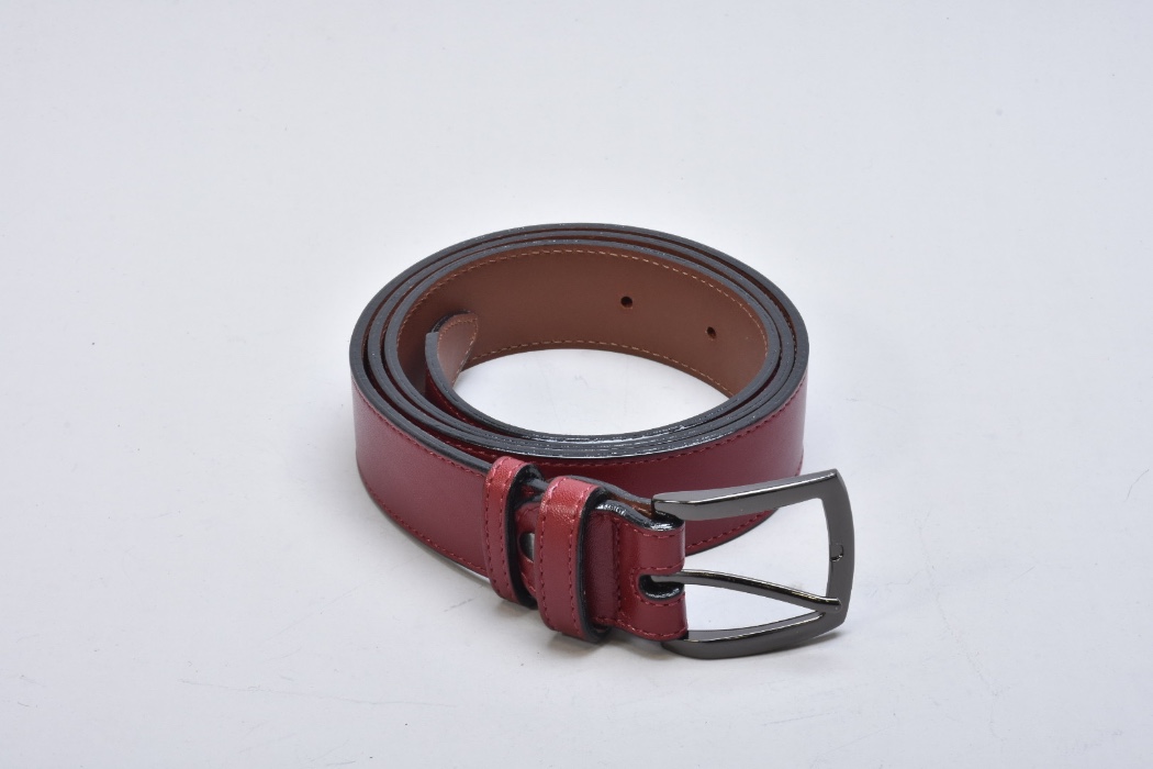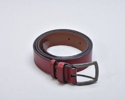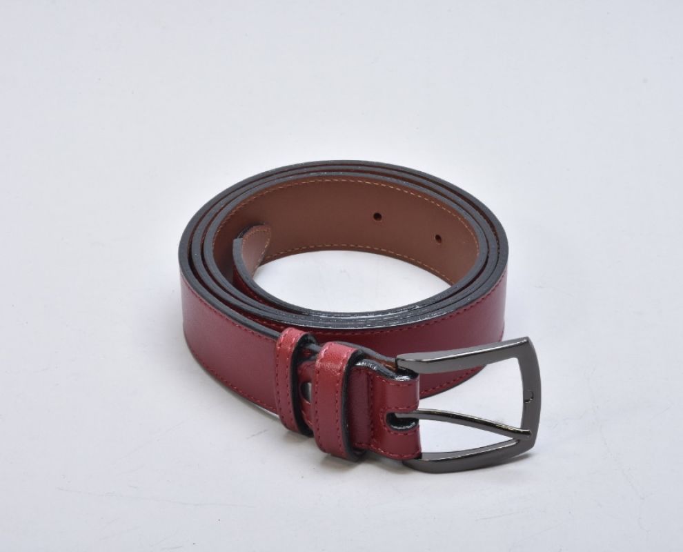Традиційний класичний шкіряний ремінь INIFIL бордового кольору , який гармонує з будь-яким кольором взуття і одягу, доповнений пряжкою колір темний нікель.