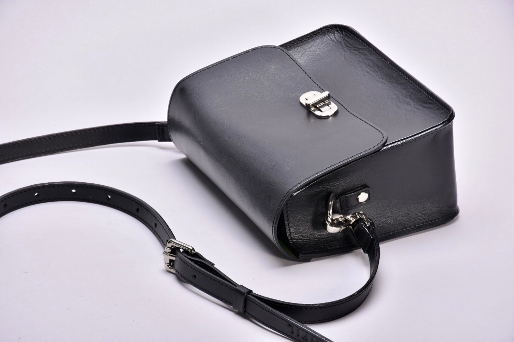 Виготовлена з натуральної лицевої шкіри вищого сорту, яка має делікатний блиск і характерну шовковисту фактуру. Її поверхня гладка, насичено-чорна, з природним глибоким відтінком, який з часом розкриває шляхетний характер матеріалу.
