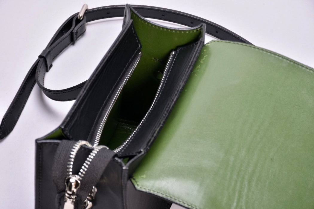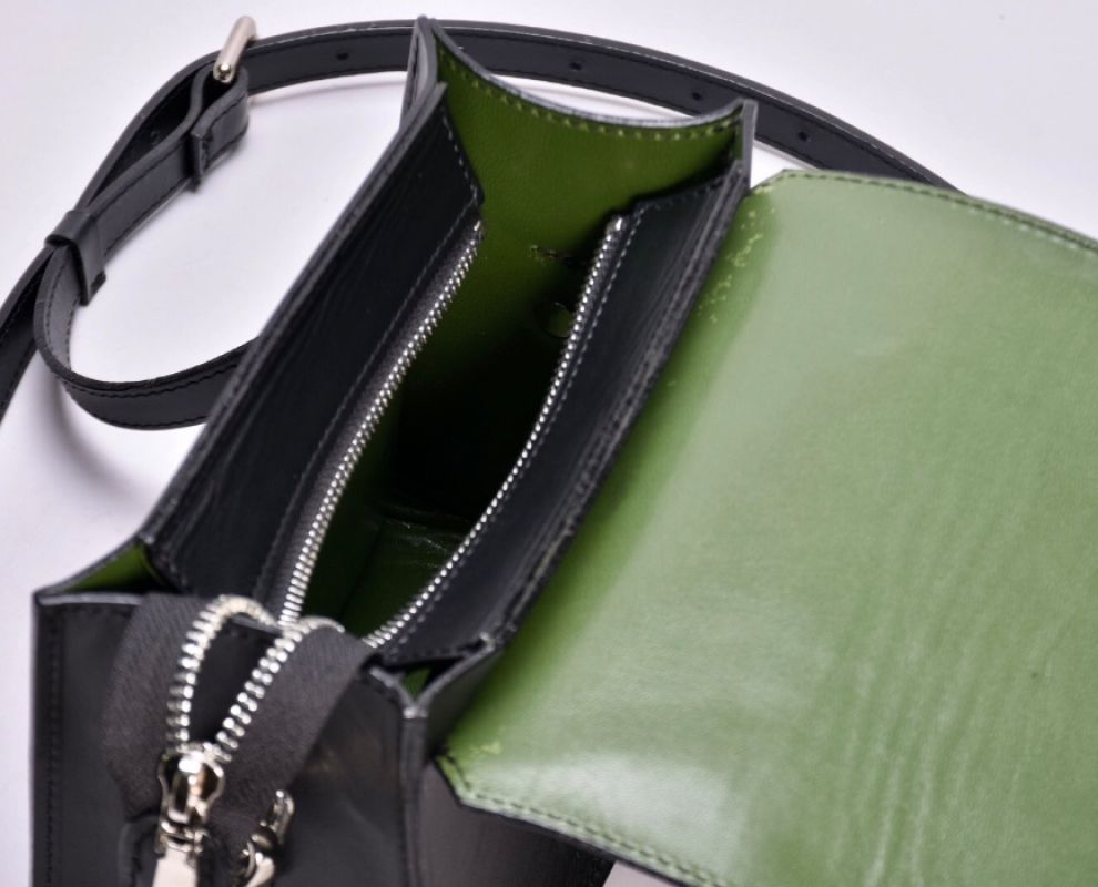 Внутрішня частина оздоблена яскравою натуральною шкірою — контрастна підкладка додає моделі індивідуальності та підкреслює ручну роботу майстрів. Усередині передбачено зручну бокову кишеню, ідеальну для зберігання дрібних речей.