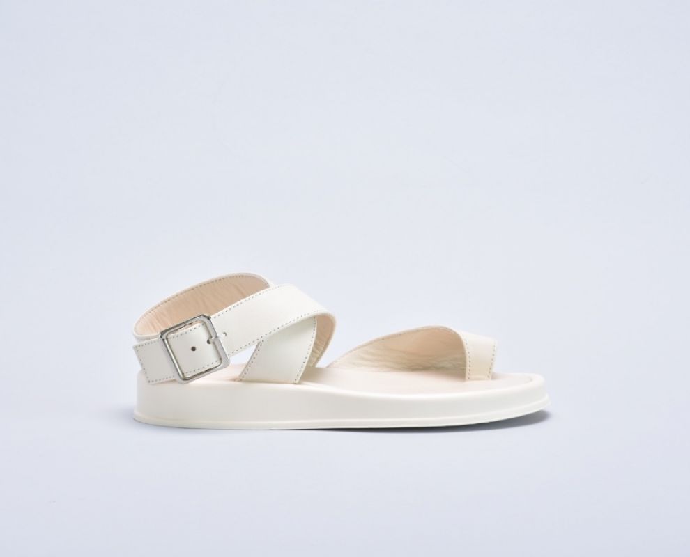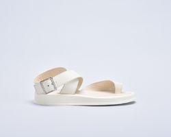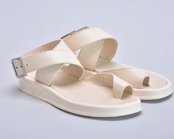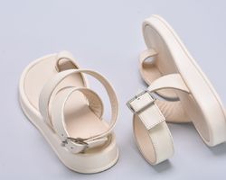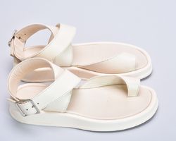 Шкіряні бежеві босоніжки з застібкою