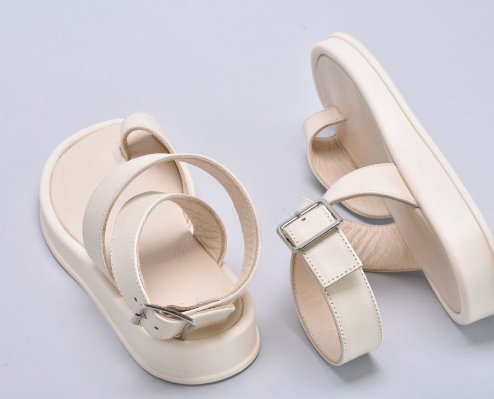 Мають легку підошву оздоблену шкірою висотою 2,5 см,зверху фіксуються ремінцем .