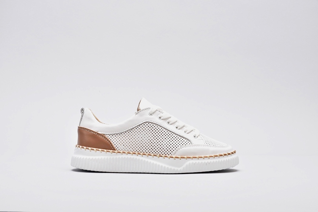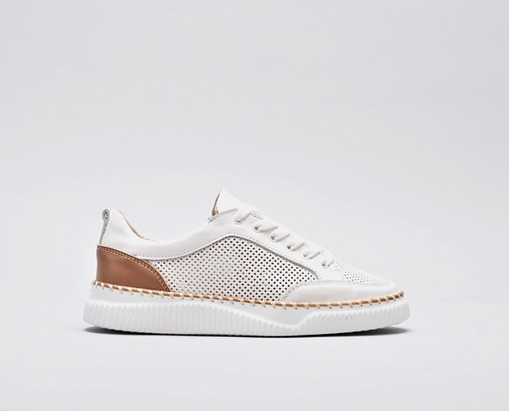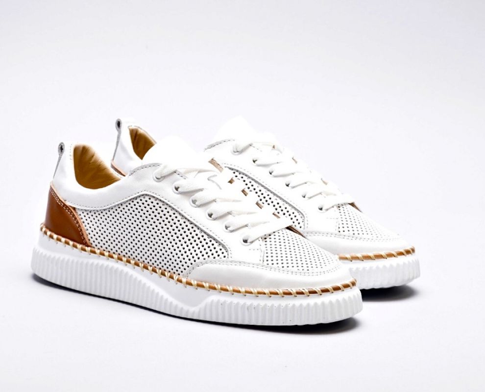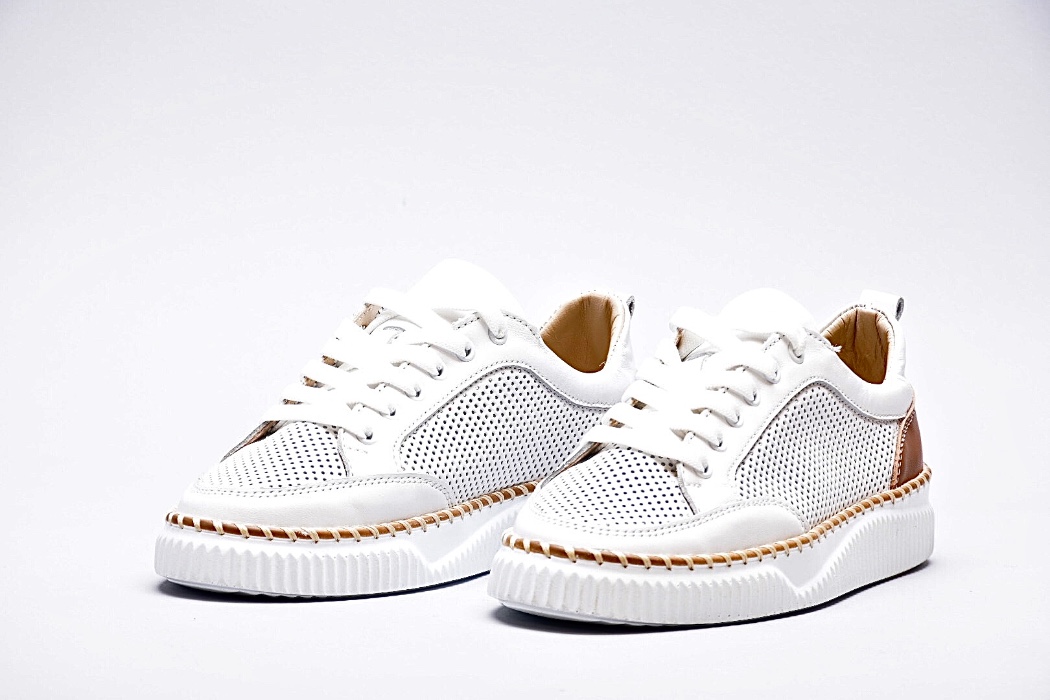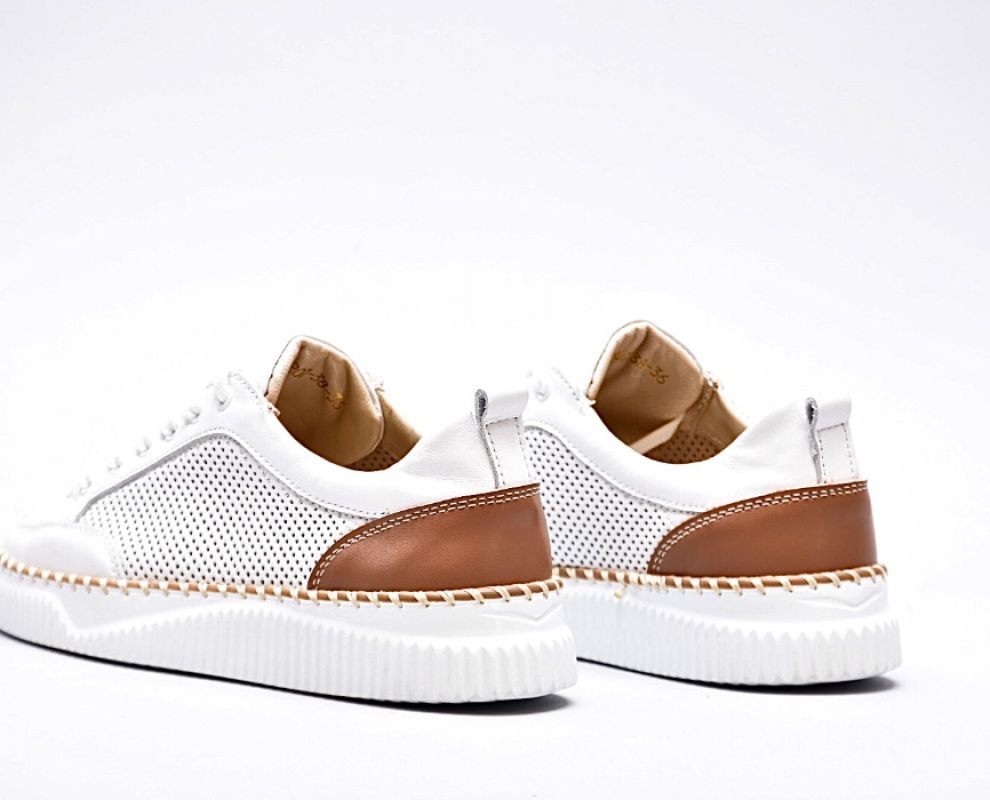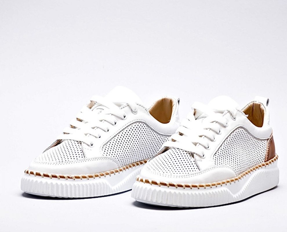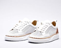 Шкіряні білі кеди перфоровані з декорованою підошвою