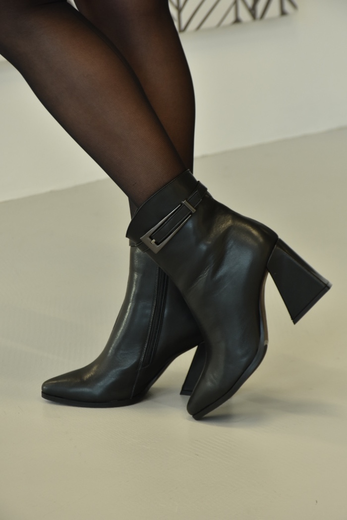 Виготовлені з гладкої чорної шкіри, вони мають гострий мис.Гострий мис надає взуттю витонченості та елегантності. Це смілива форма, яка візуально подовжує ногу, роблячи силует більш граційним.