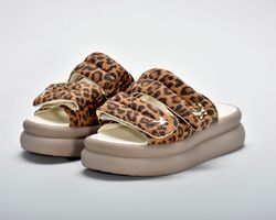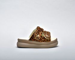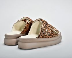 Виготовлені з вишуканої натуральної замші, з ефектним леопардовим принтом у відтінках коричневого.