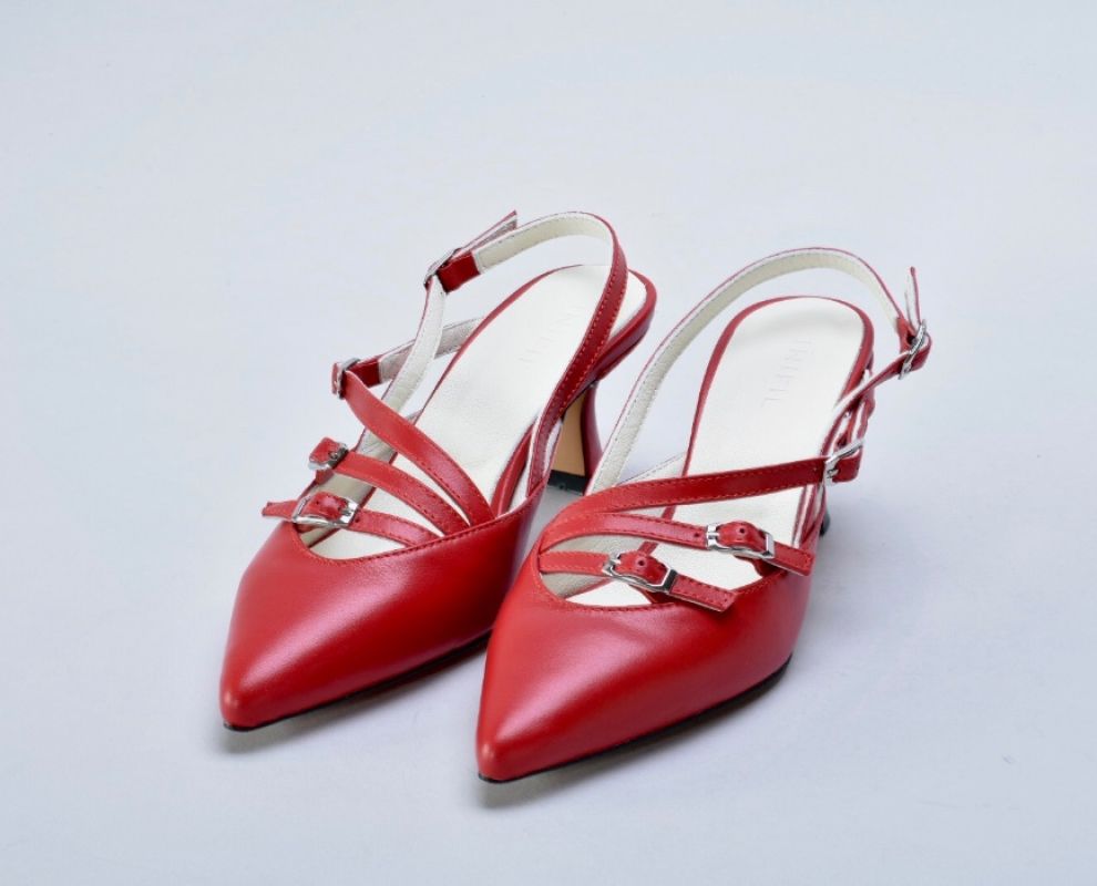 Червоні слінгбеки від українських дизайнерів inifil, де мінімалізм форми поєднується з виразним дизайном , а червоний колір створить акцент у будь-якому образі.