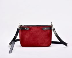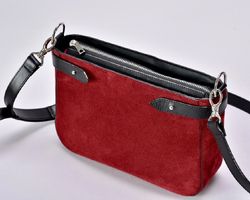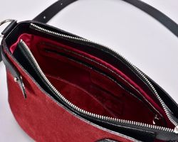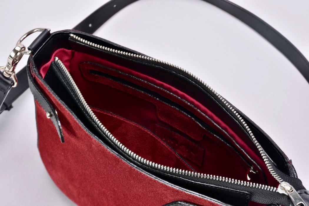 Сумка виконана з натуральної замші бордового кольору особливого оксамитового відтінку, який в залежності від освітлення та кольорів, що знаходяться поруч, переливається безліччю різноманітних півтонів від винного до темно-бордового. Колір виглядає дуже благородно та аристократично.