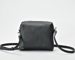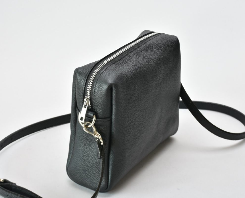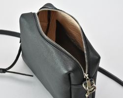Сумка чорна на плече з натуральної шкіри