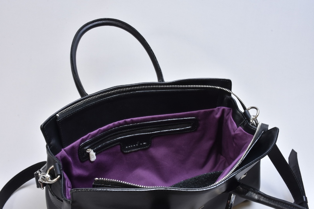 Внутрішній простір шкіряної сумки продуманий так, щоб у ній було зручно розмістити всі необхідні речі. Всередині знаходиться одне основне відділення, яке дозволяє легко організувати вміст сумки. Для дрібниць передбачена шкіряна кишеня, а також внутрішня бокова кишеня для речей, які повинні бути завжди під рукою — телефону, ключів або документів.