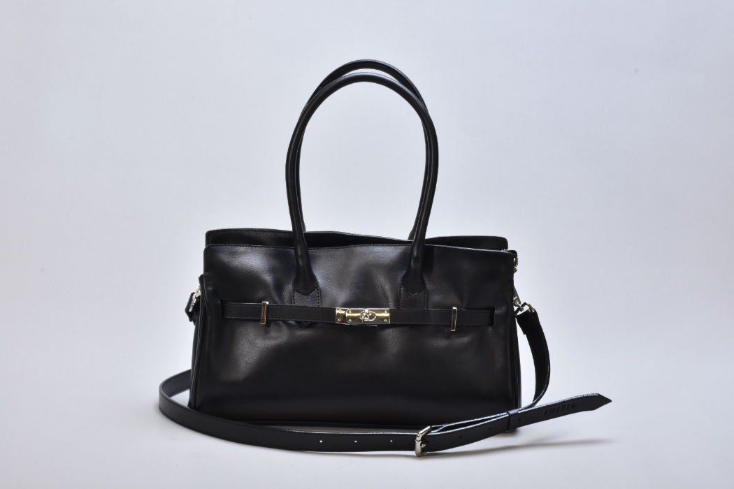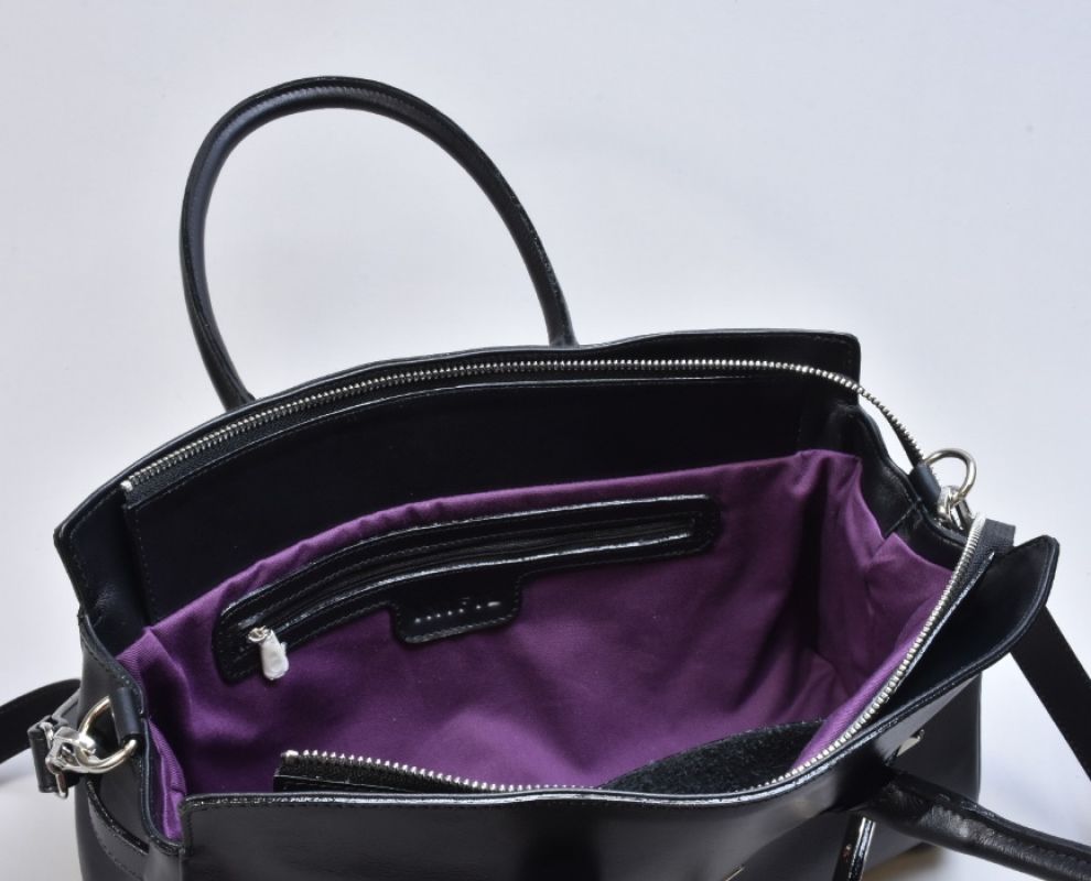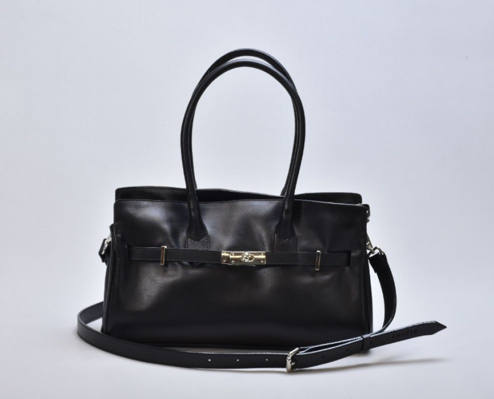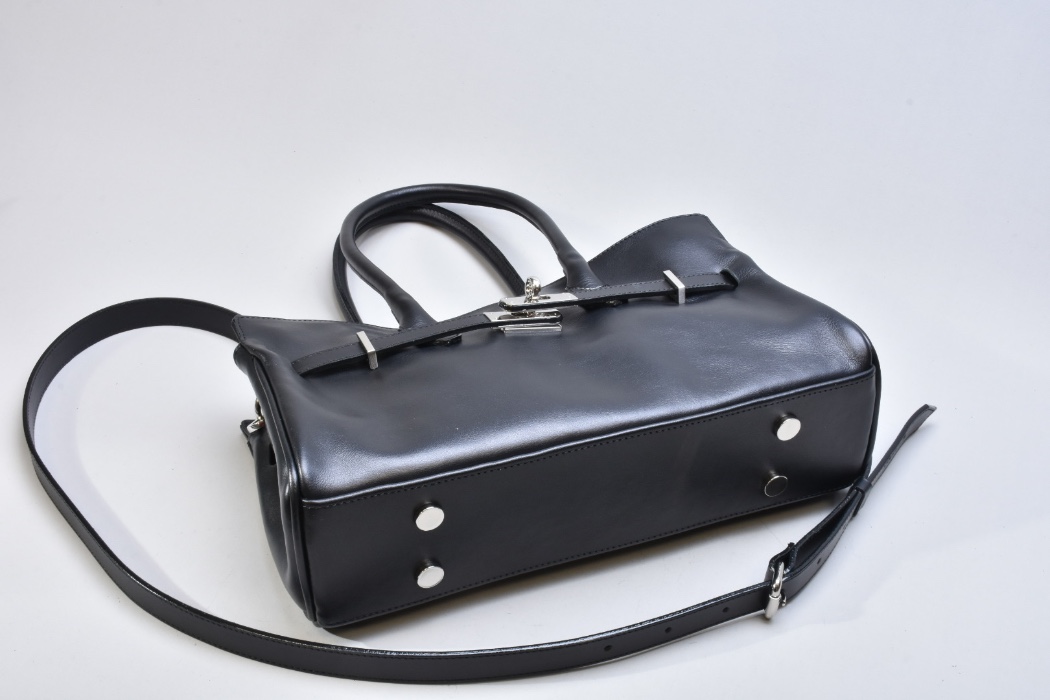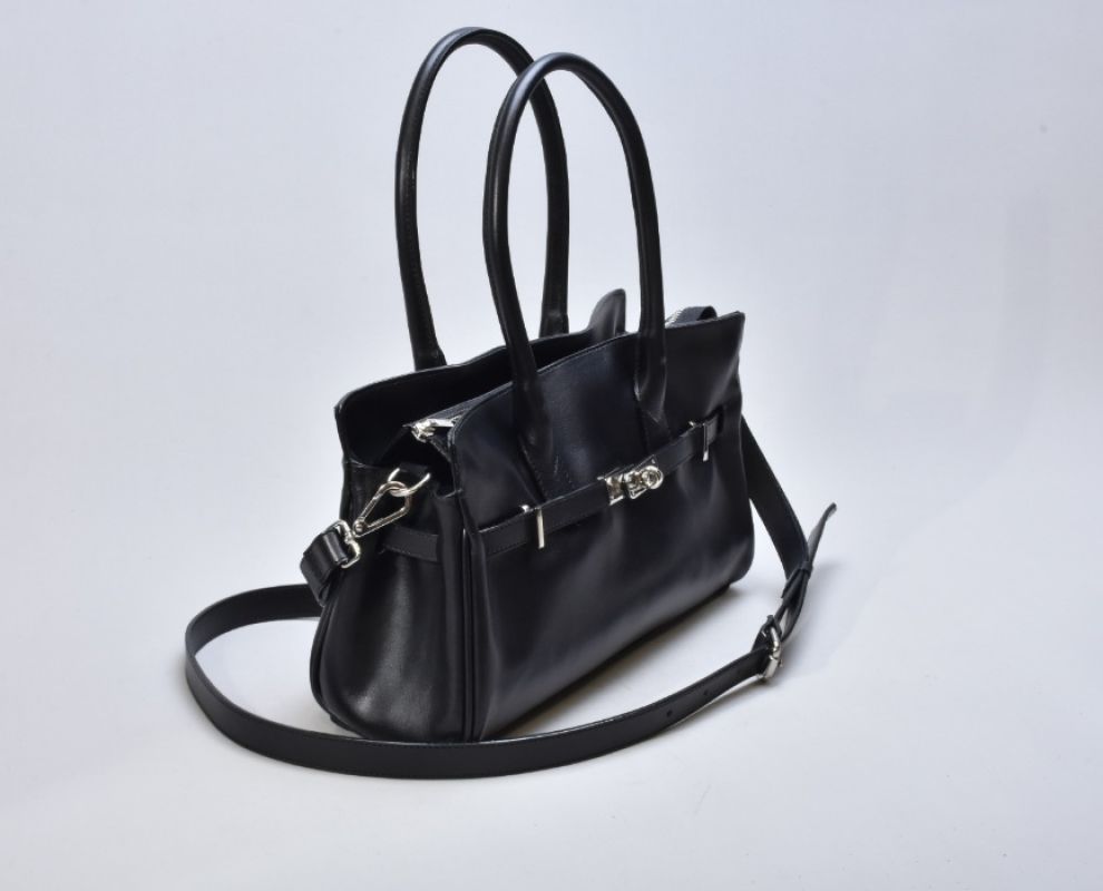 Дизайн сумки підкреслює витончена металева фурнітура кольору нікель. Холодний сріблястий відтінок створює стильний контраст із глибоким чорним кольором натуральної шкіри, додаючи моделі сучасного характеру. Металеві елементи виглядають делікатно, але водночас виразно, формуючи відчуття преміального аксесуара. Фурнітура не лише естетична, а й надійна — кожна деталь продумана для комфорту щоденного використання та довговічності.