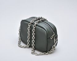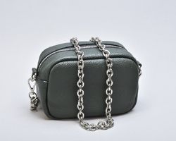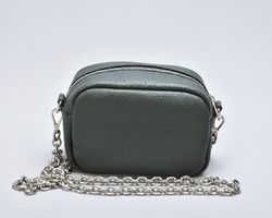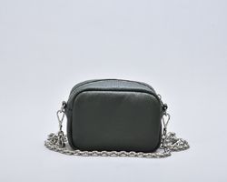Сумка крос-боді зеленого кольору з натуральної шкіри