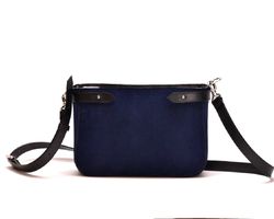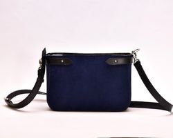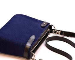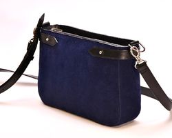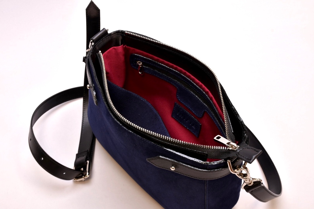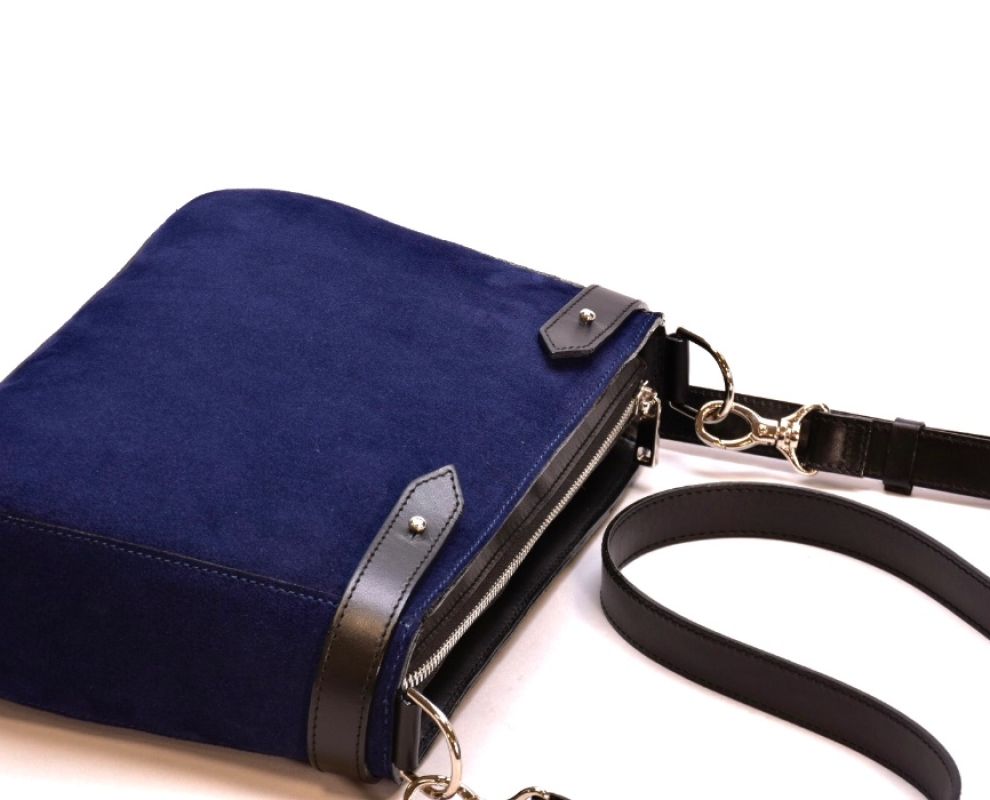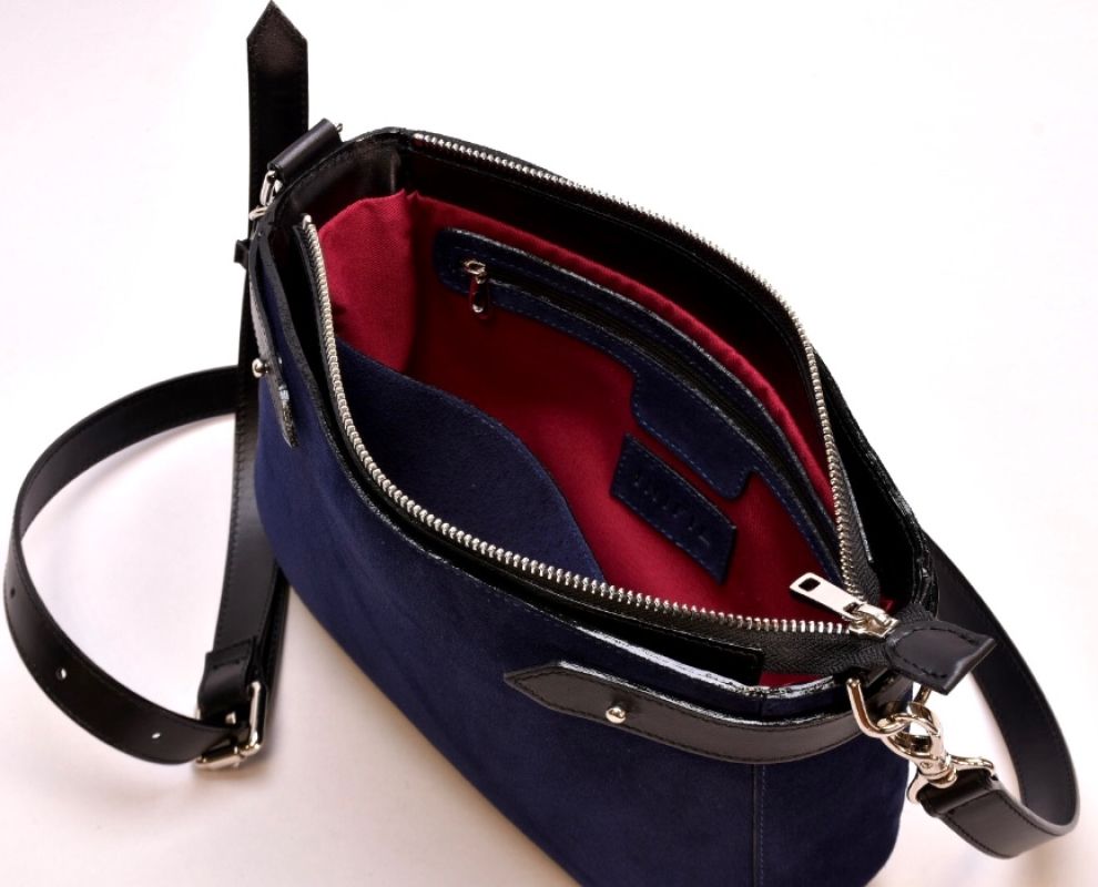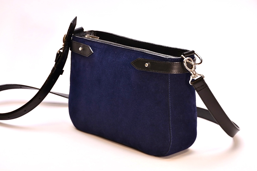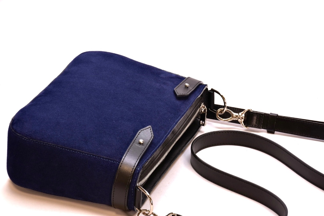Ці сумки з закругленими краями з’явилися в колекціях inifil , виконані з м’якої шкіри. створюючи образ, наповнений затишком і витонченістю,поєднуючи у своєму дизайні певну зухвалість і романтичність .Бічні панелі оснащенні натуральною замшею синього кольору.