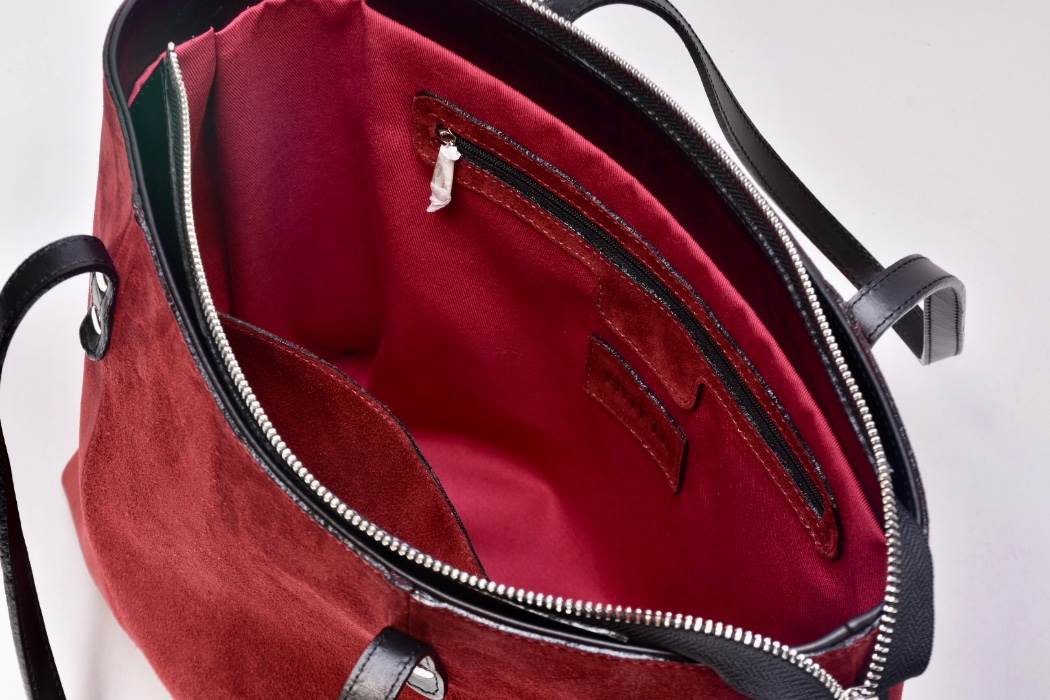 • Натуральна замша марсалового кольору ; натуральна чорна лицева шкіра