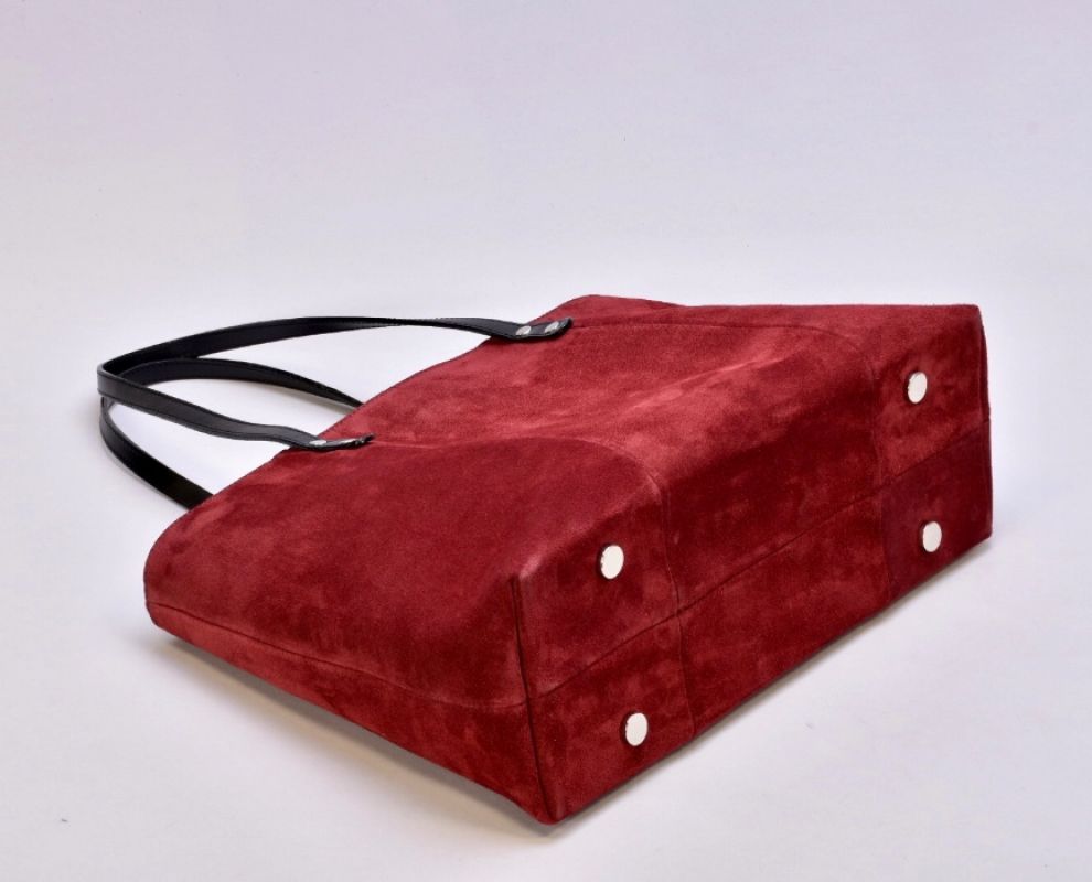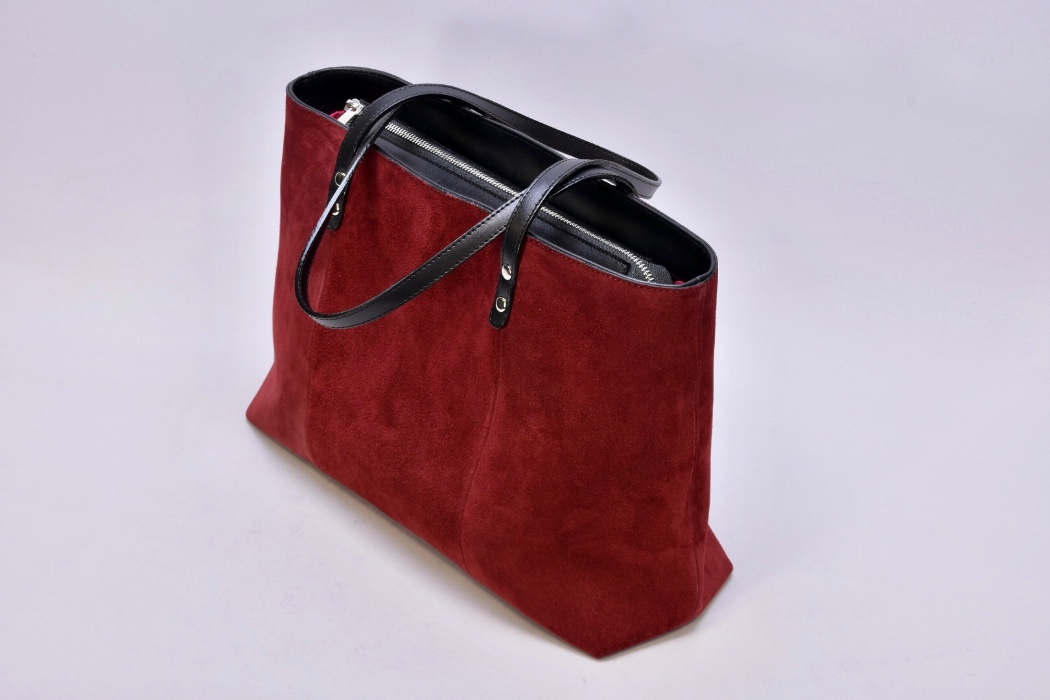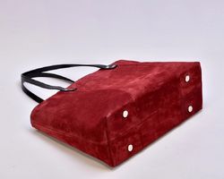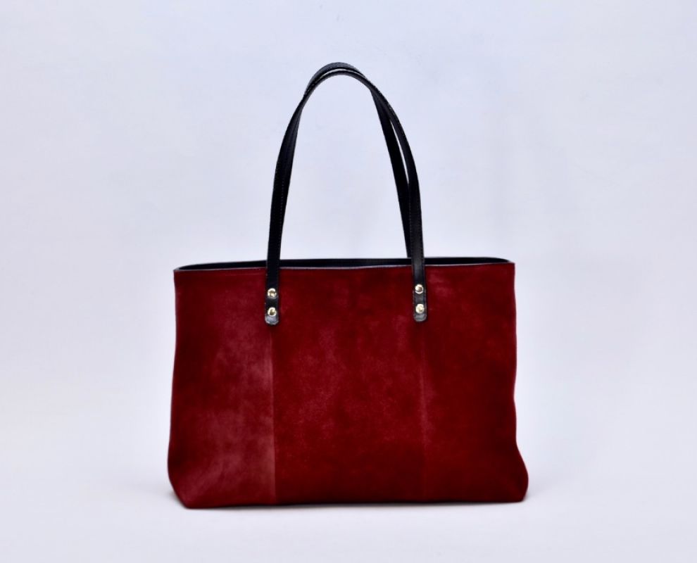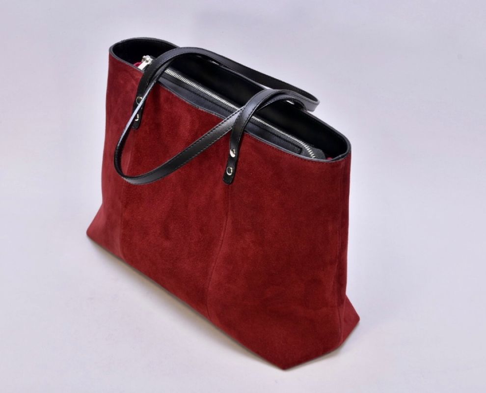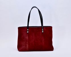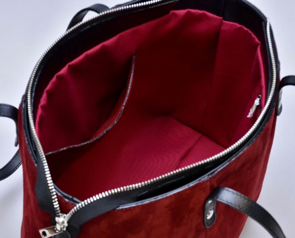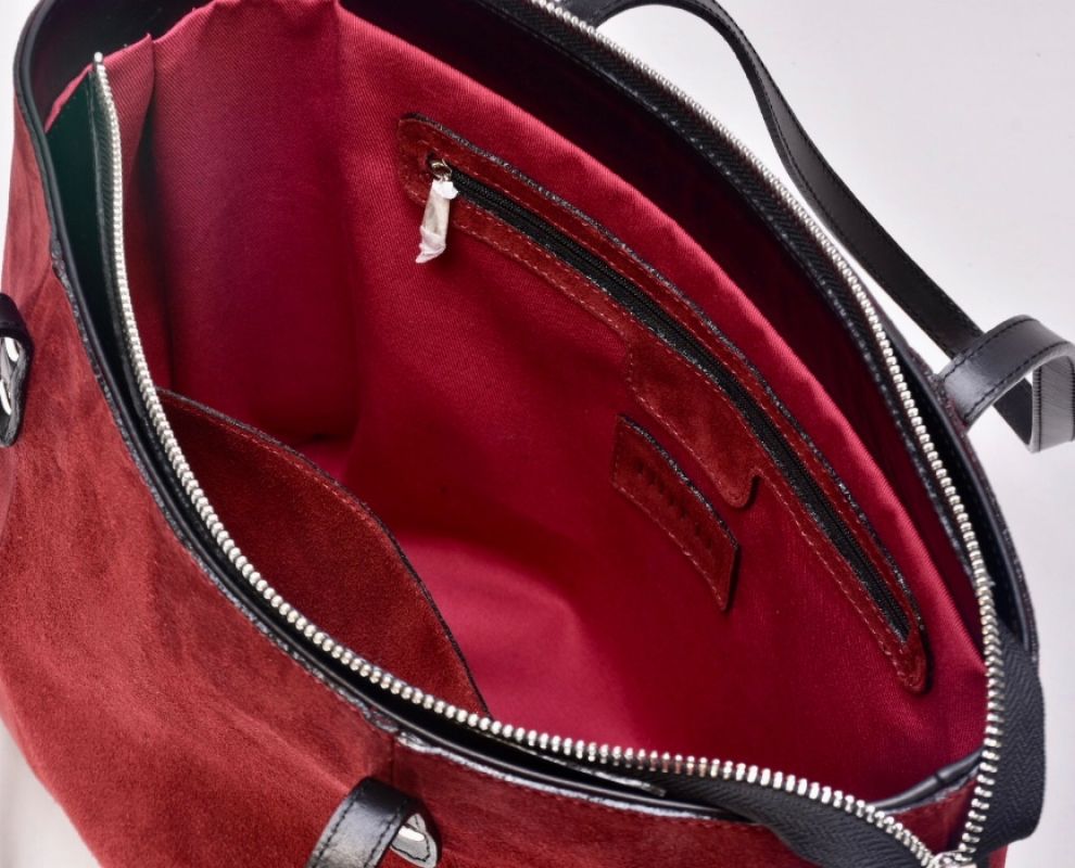 Сумка з натуральної бордової замші та чорної шкіри