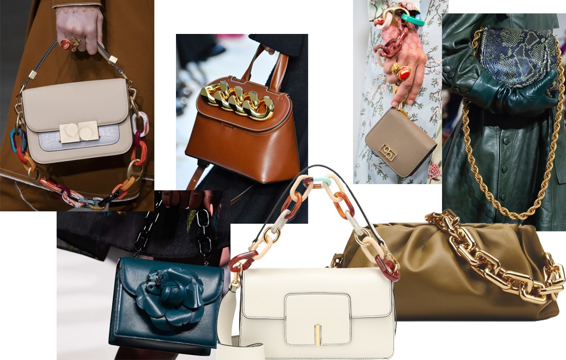 Ланцюжок замість ременя - ефектний тренд для сумок з колекції літо 2020 року. Це символ розкоші, класики. Ланцюжок може бути короткою і широким. Розмір, форма і довжина ланцюга може варіювати, але будь-яка варіація буде виглядати розкішно і стильно.