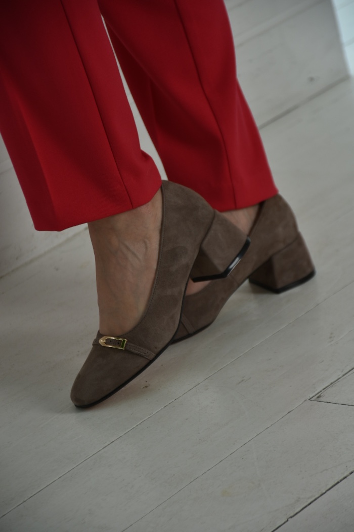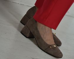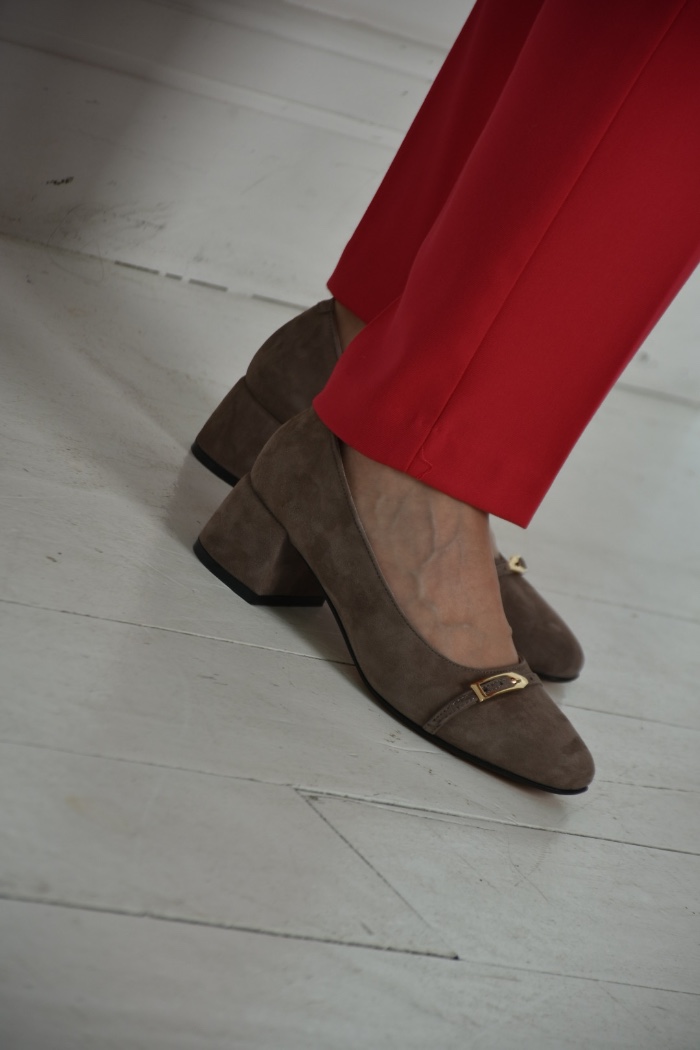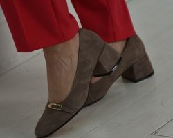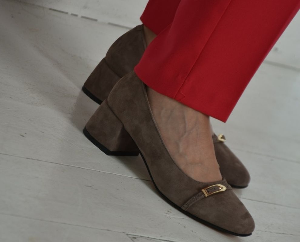 Класичні туфлі з натуральної замші бежевого кольору — оптимальний варіант,при створенні бездоганного офісного образу .Такі туфлі можна комбінувати з класичними брюками, світлими сорочками і спідницями .