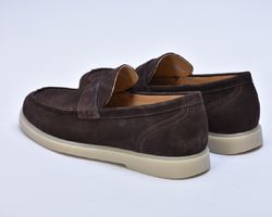 Чоловічі лофери виконані з натуральної якісної замші , виглядають лаконічно і впевнено. Контрастна підошва з поліреутану створює унікальний акцент, доповнюючи образ із вишуканою легкістю.