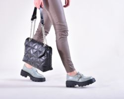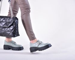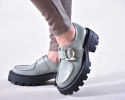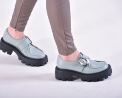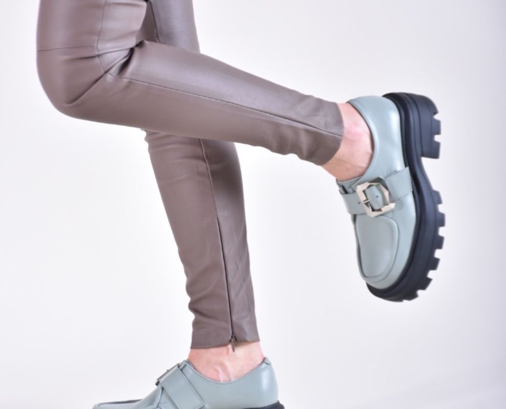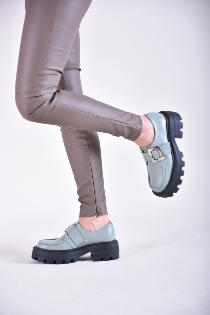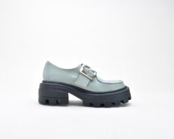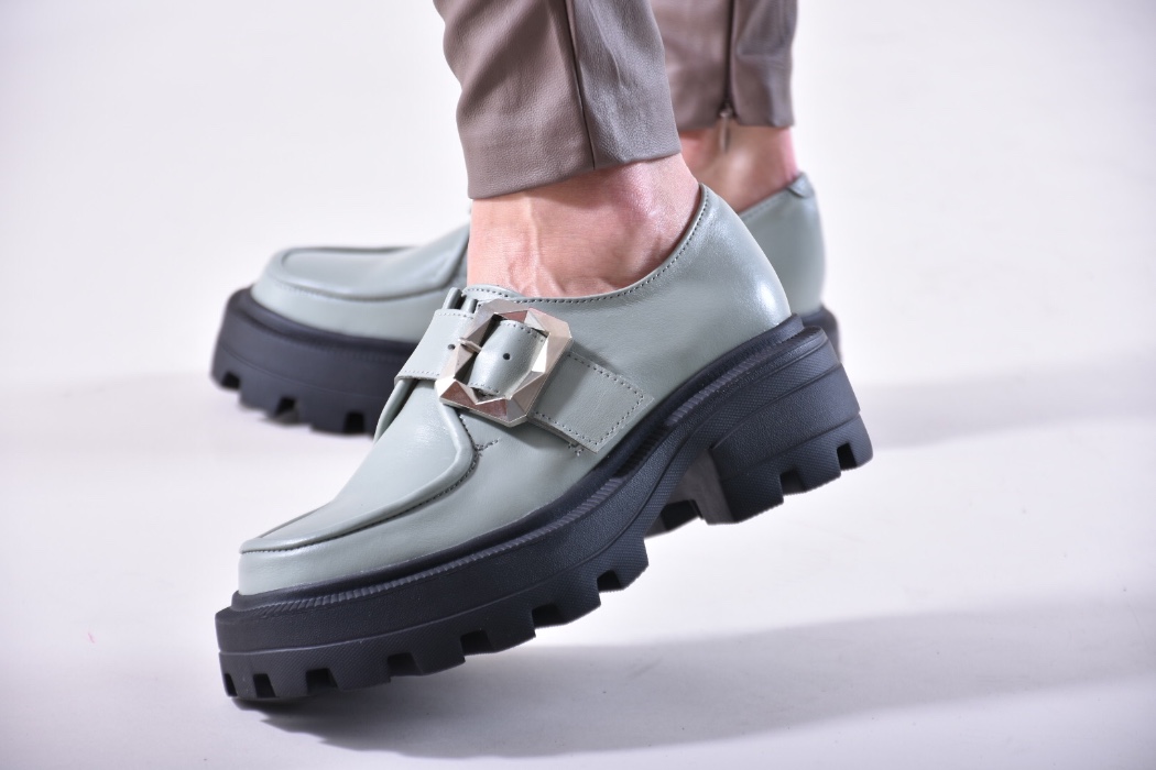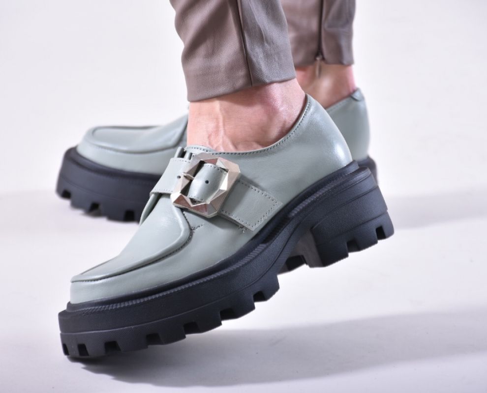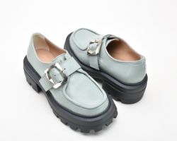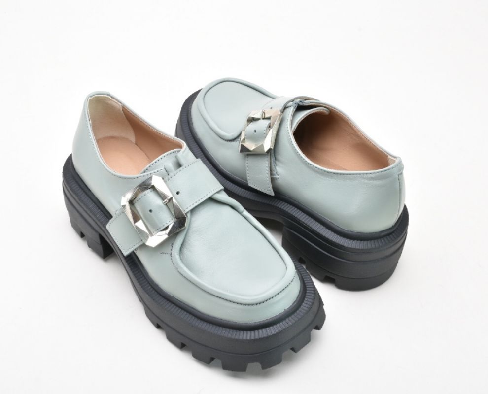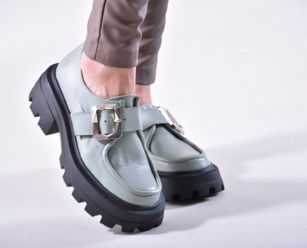 Топова модель сезону осінь весна,туфлі шкіряні на високій підошві айсгрін з пряжкою.