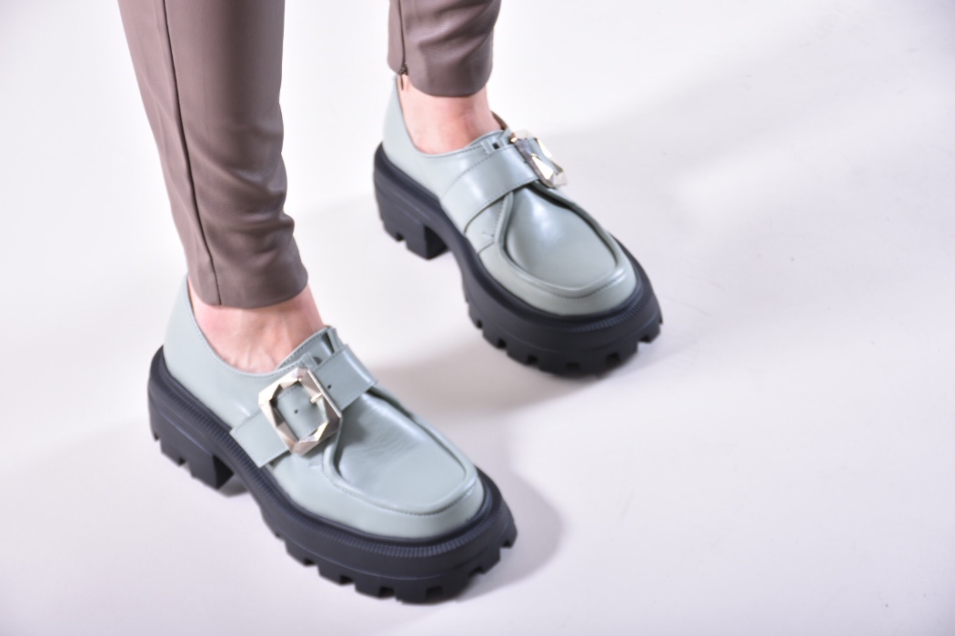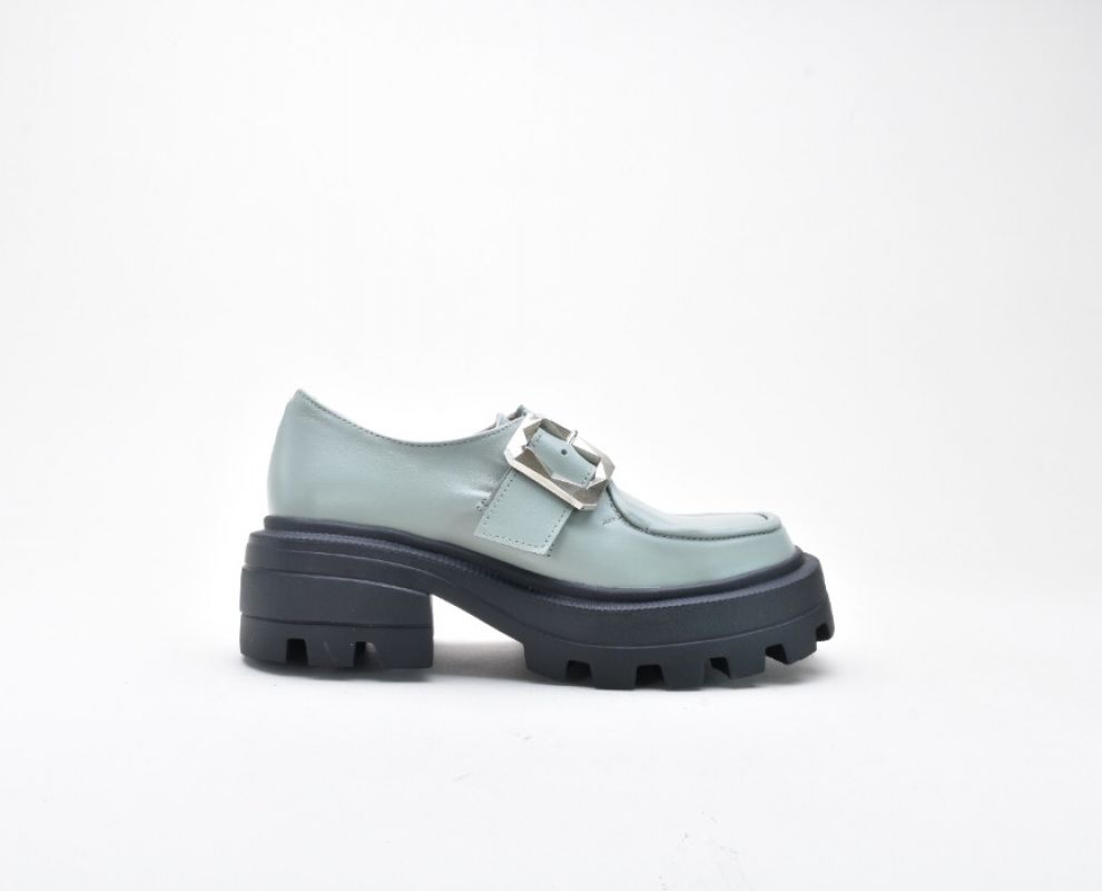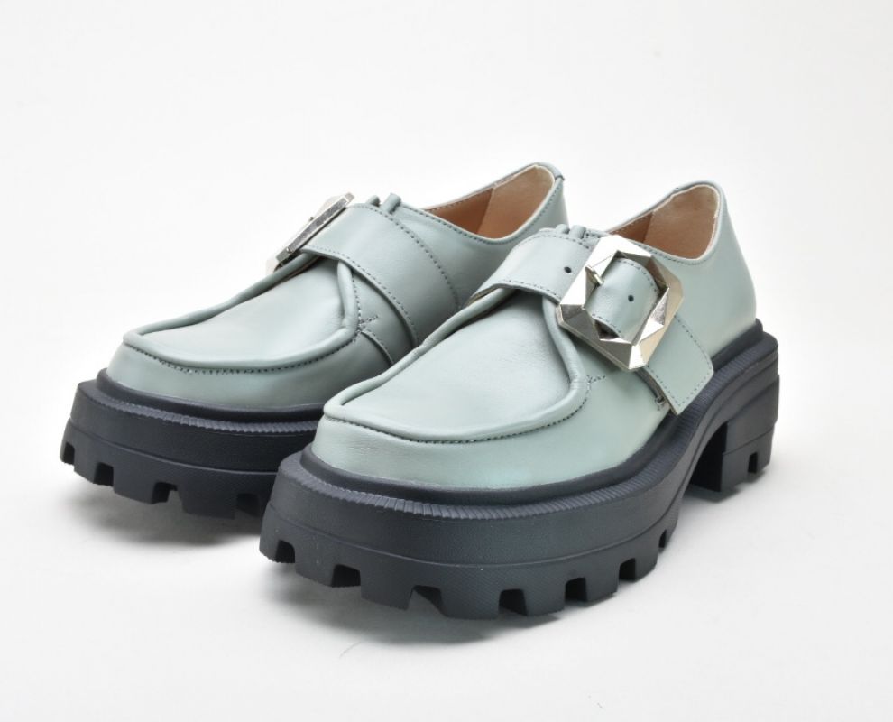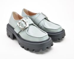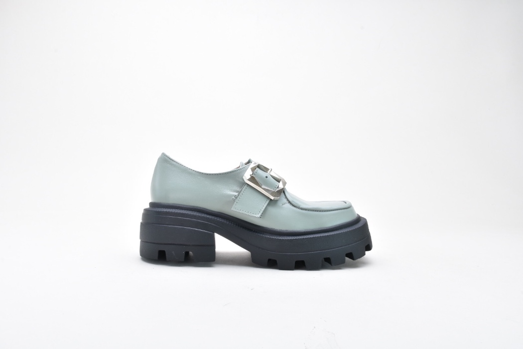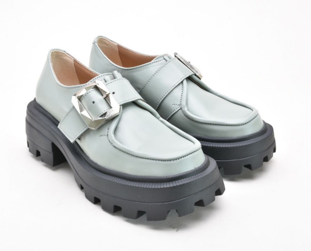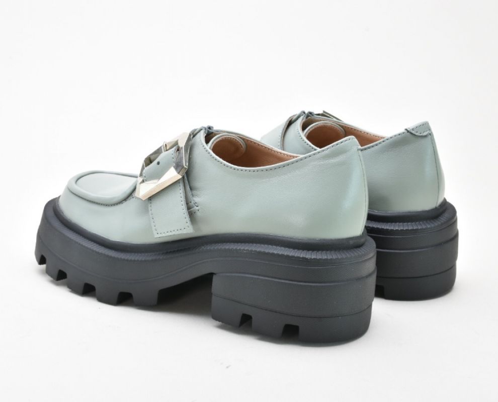 Туфлі шкіряні на високій підошві айсгрін з пряжкою