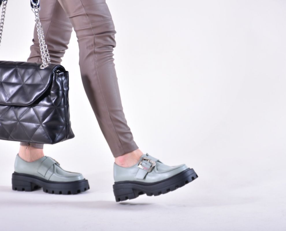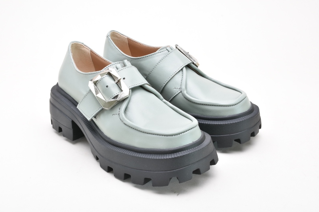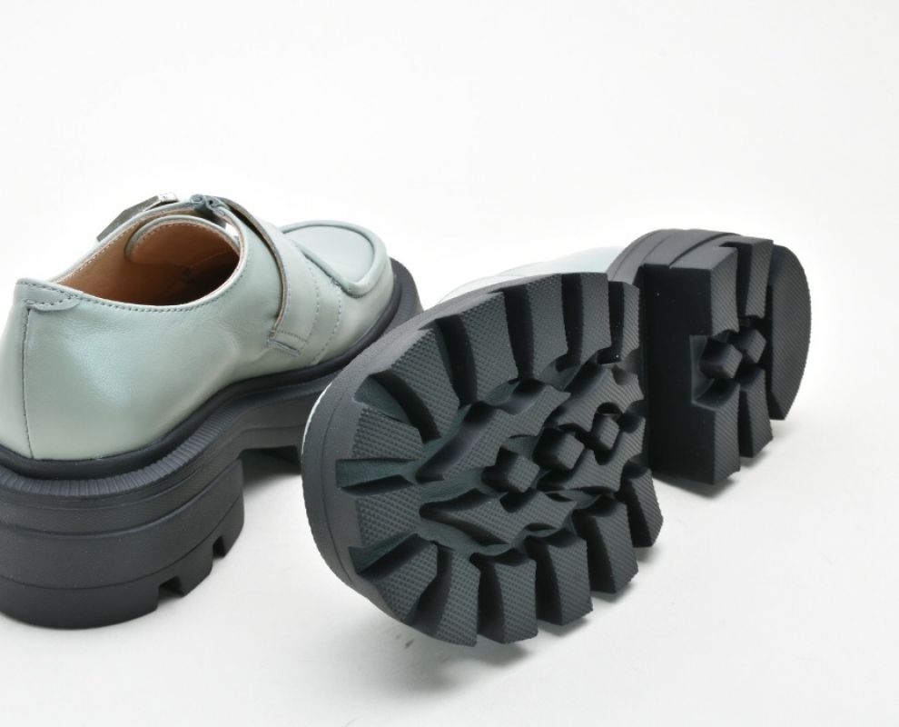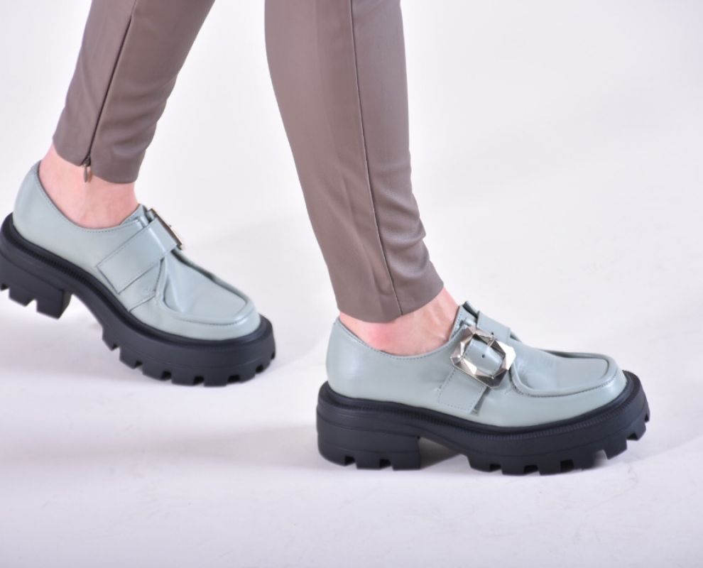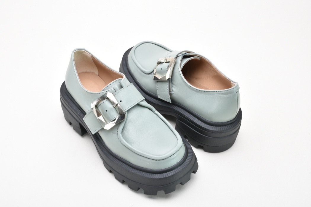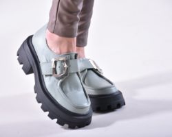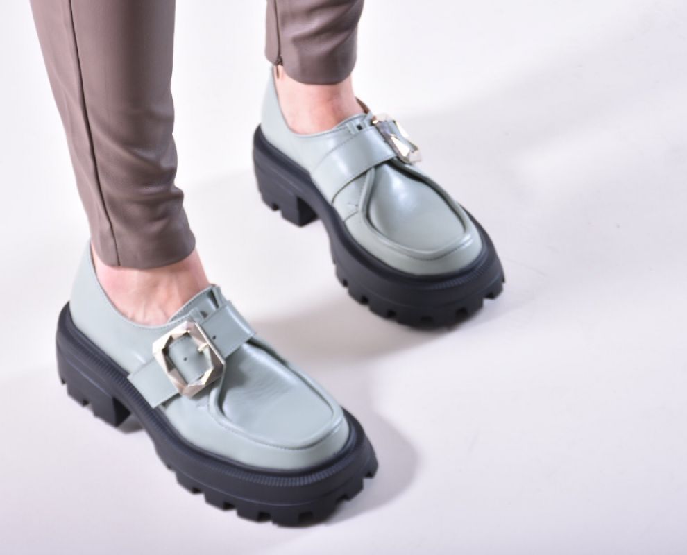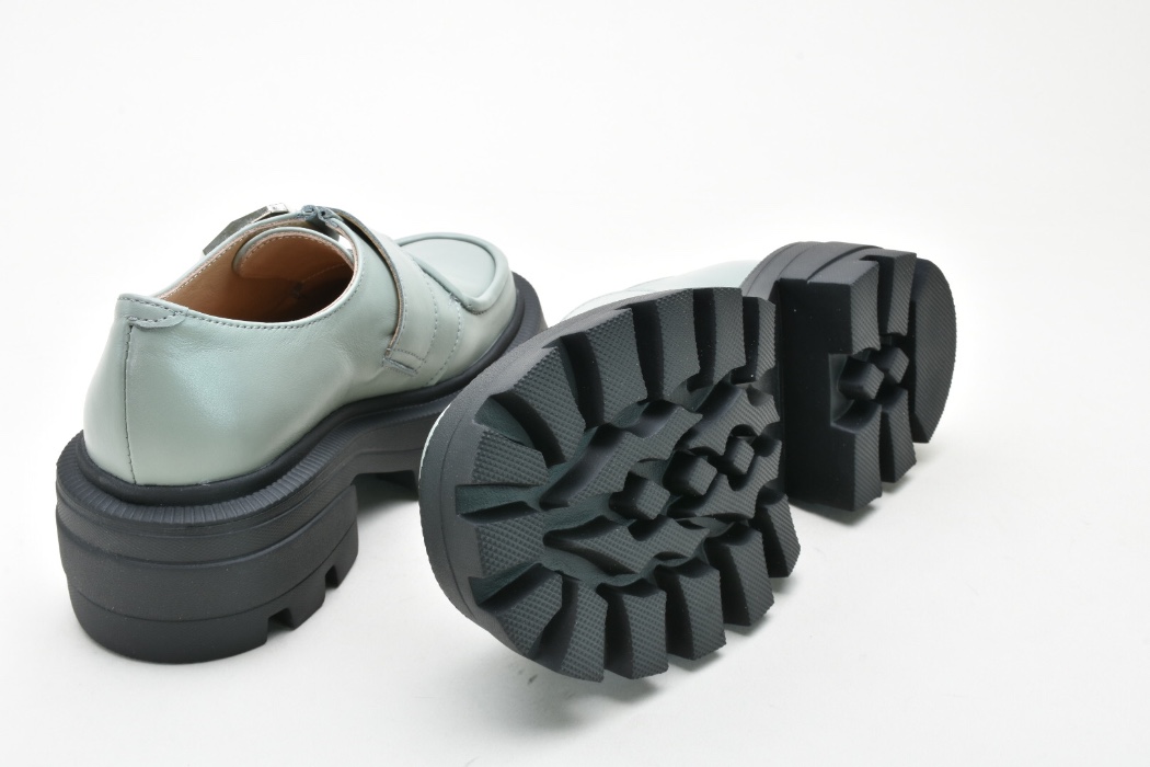 Туфлі шкіряні на високій підошві айсгрін з пряжкою