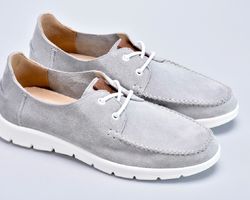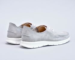 Туфлі топсайдери чоловічі з натуральної замші сірого кольору