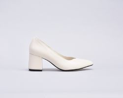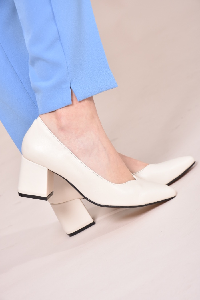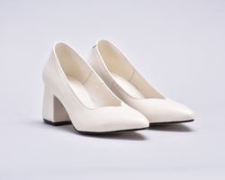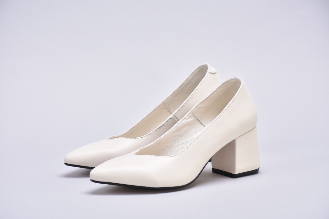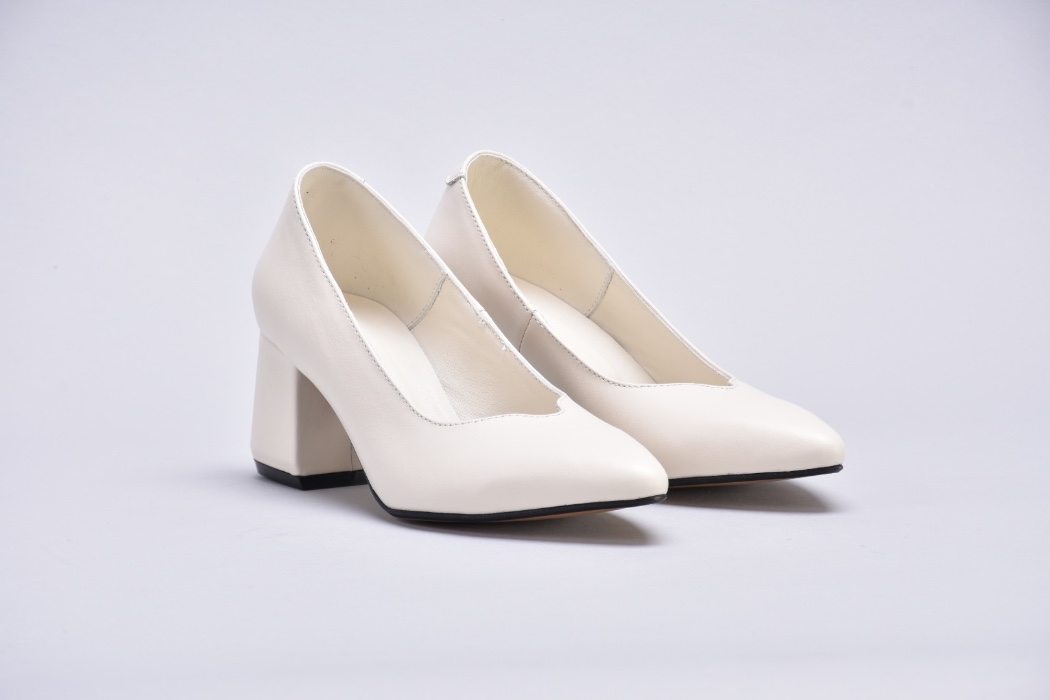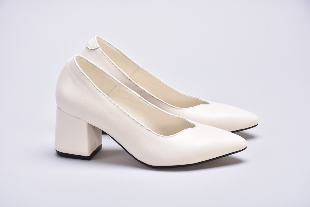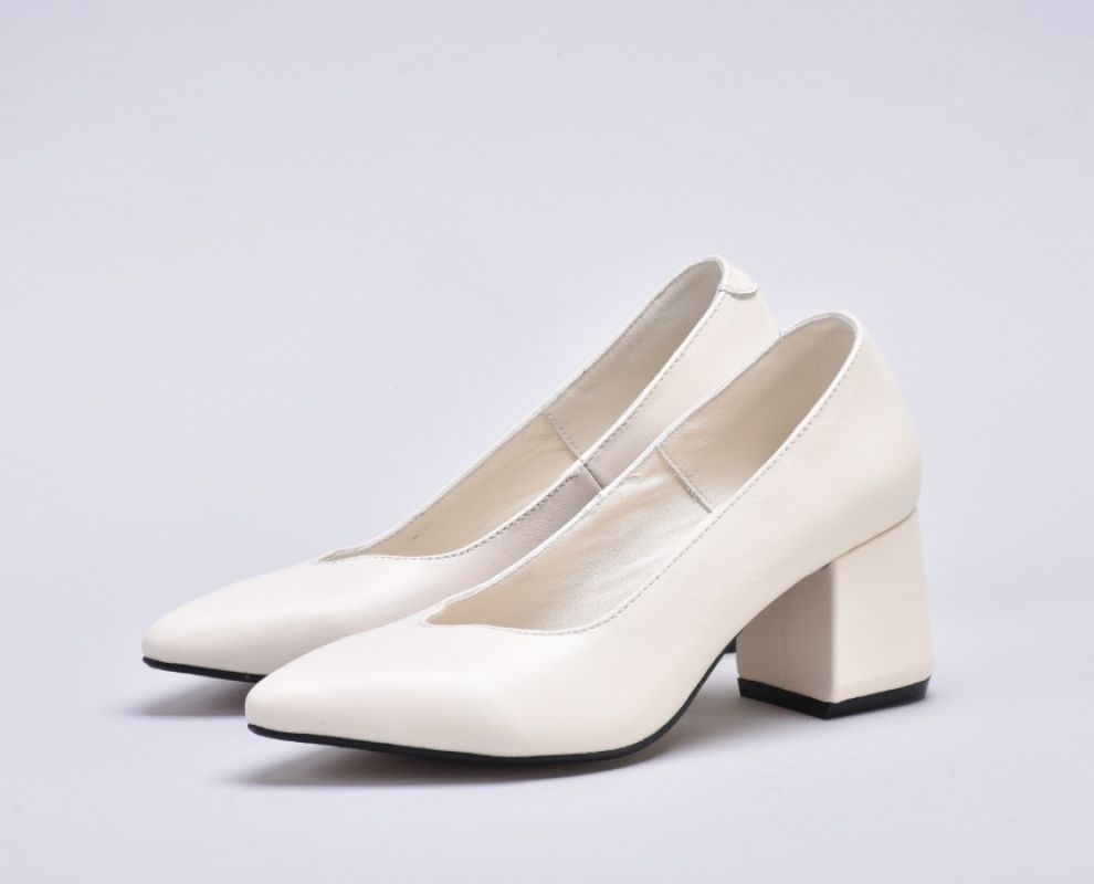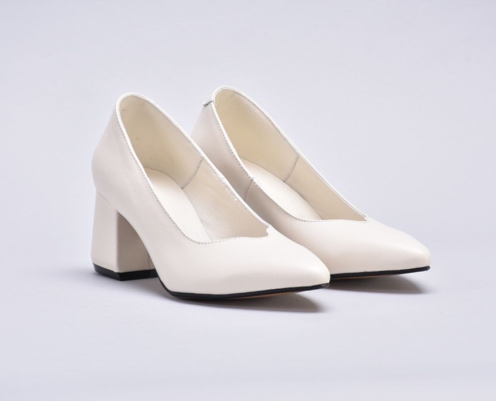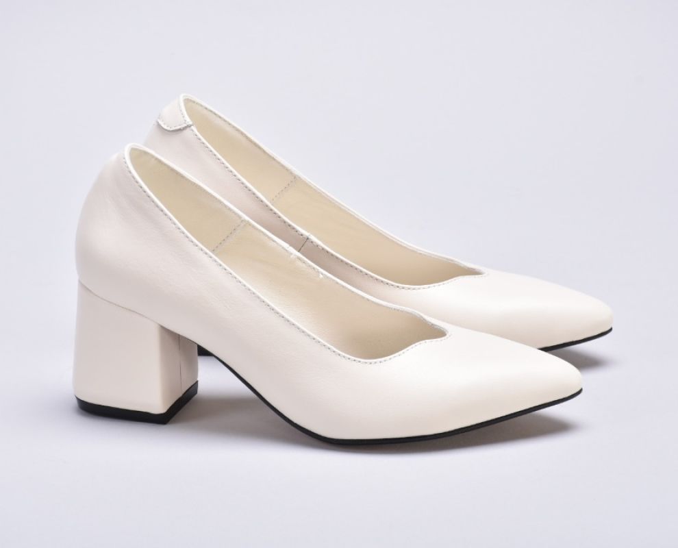 Туфлі жіночі на підборах з натуральної шкіри кольору айворі