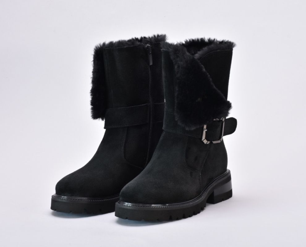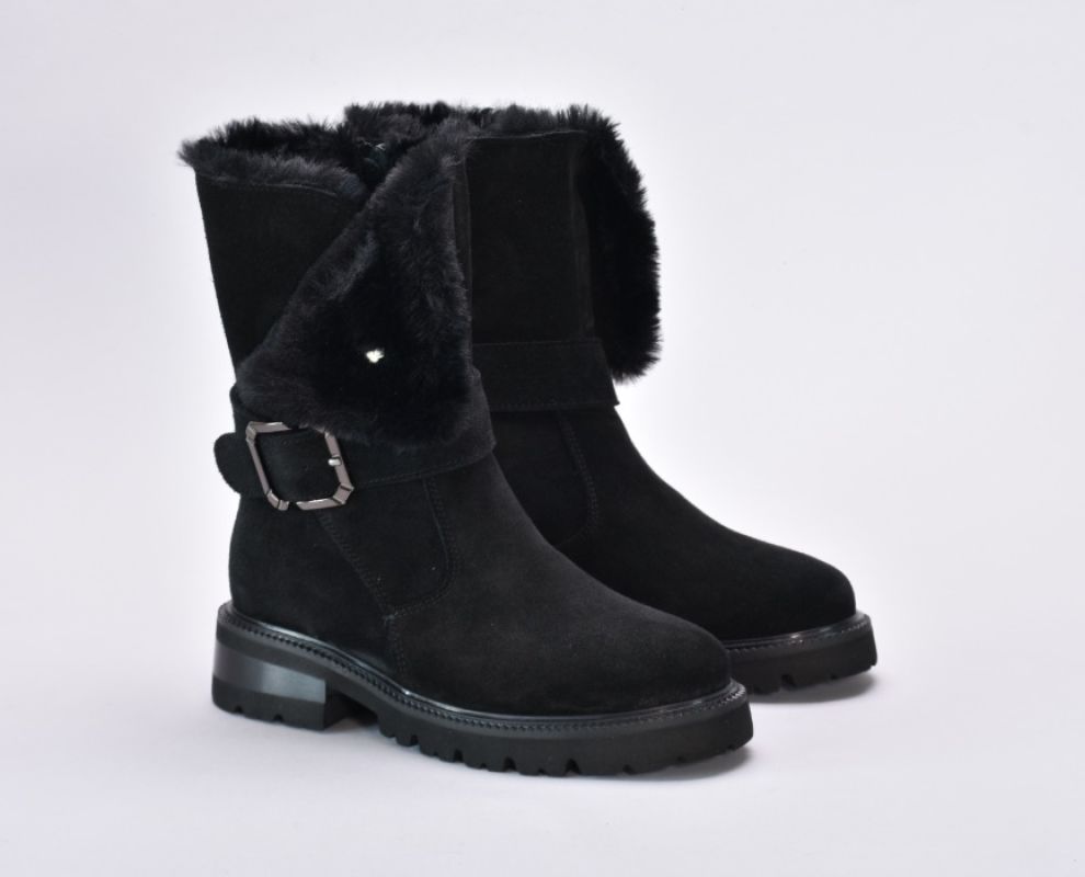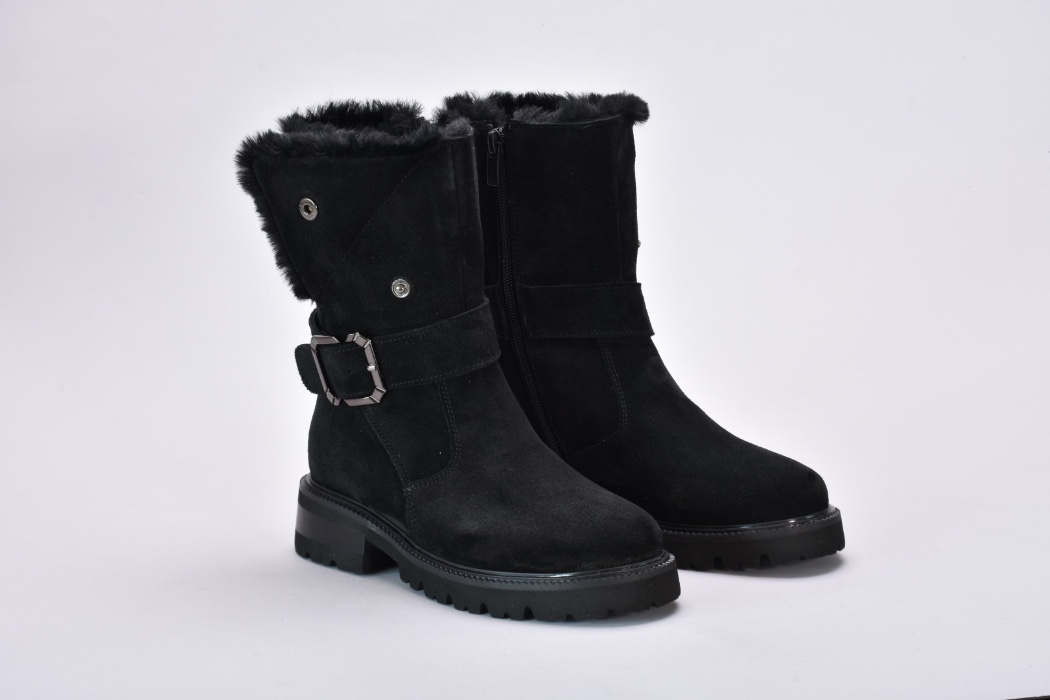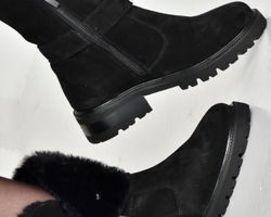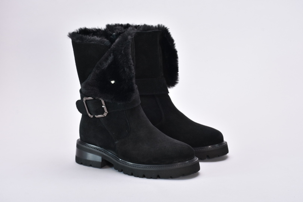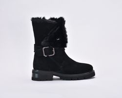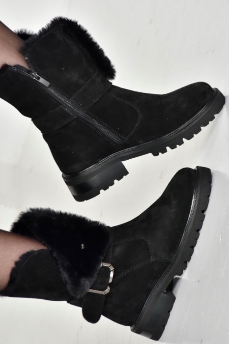 Ця пара демісезонних черевиків виконана з якісної натуральної замші чорного кольору ,оснащена хутром зверху та блискавкою збоку.