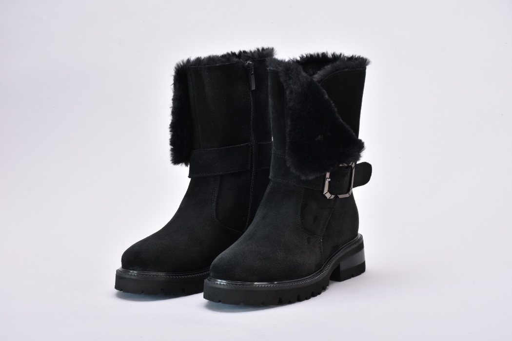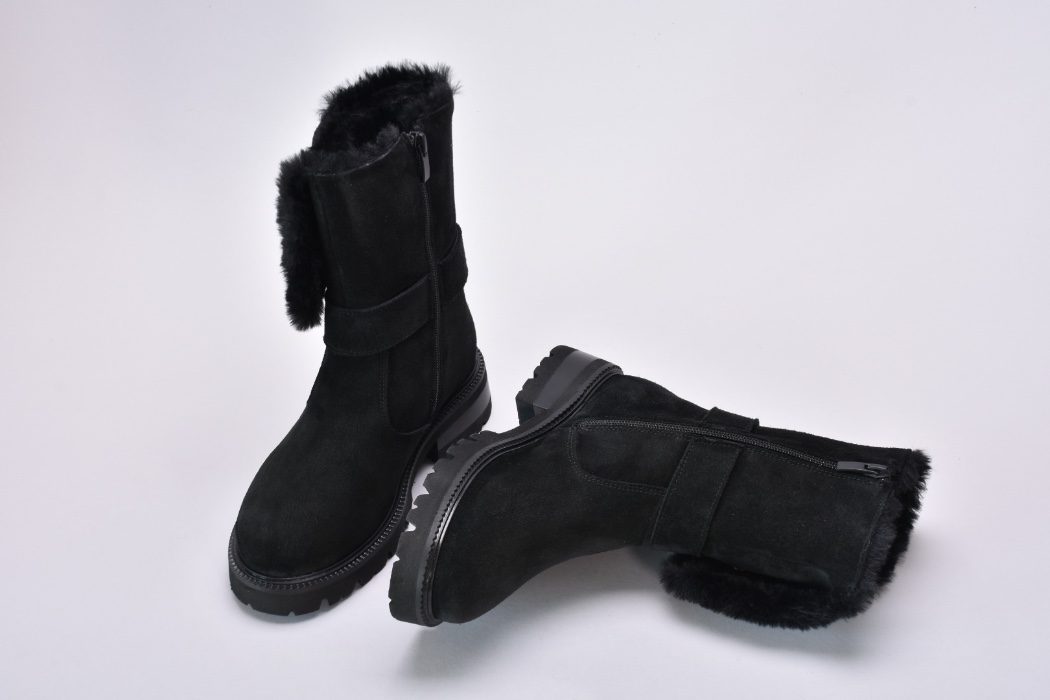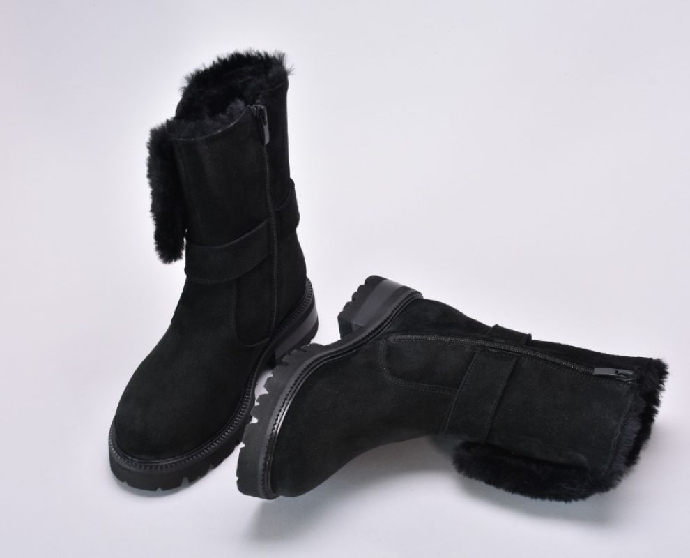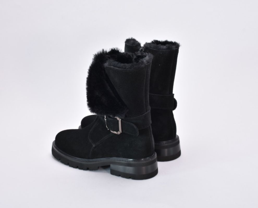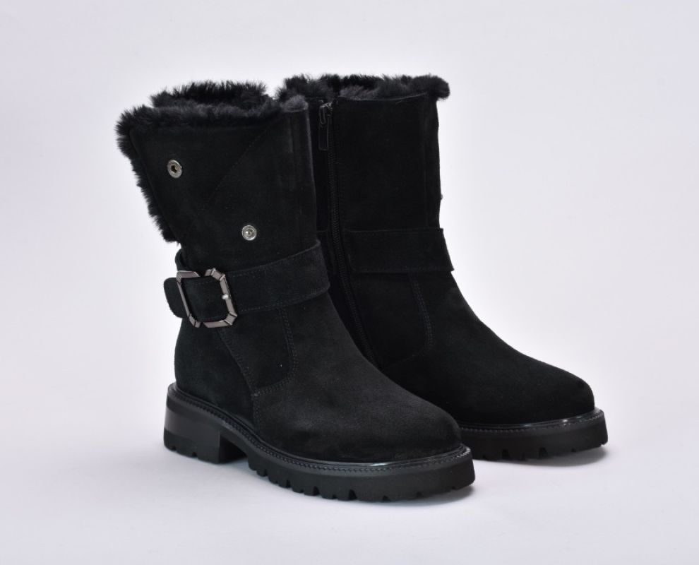 Ця пара демісезонних черевиків виконана з якісної натуральної замші чорного кольору ,оснащена хутром зверху та блискавкою збоку.