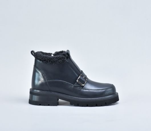 Чорні замшеві черевики з декорованим хутром бежевого кольору